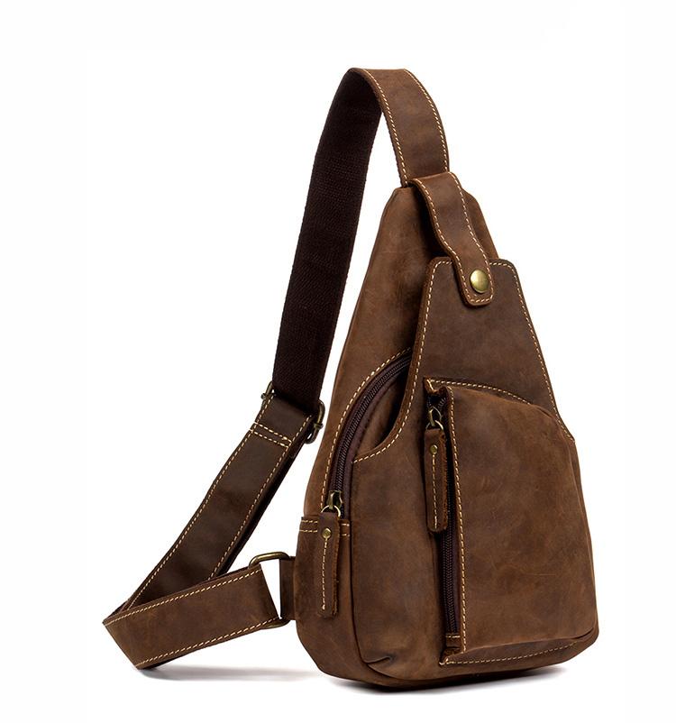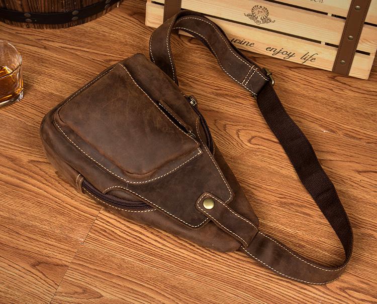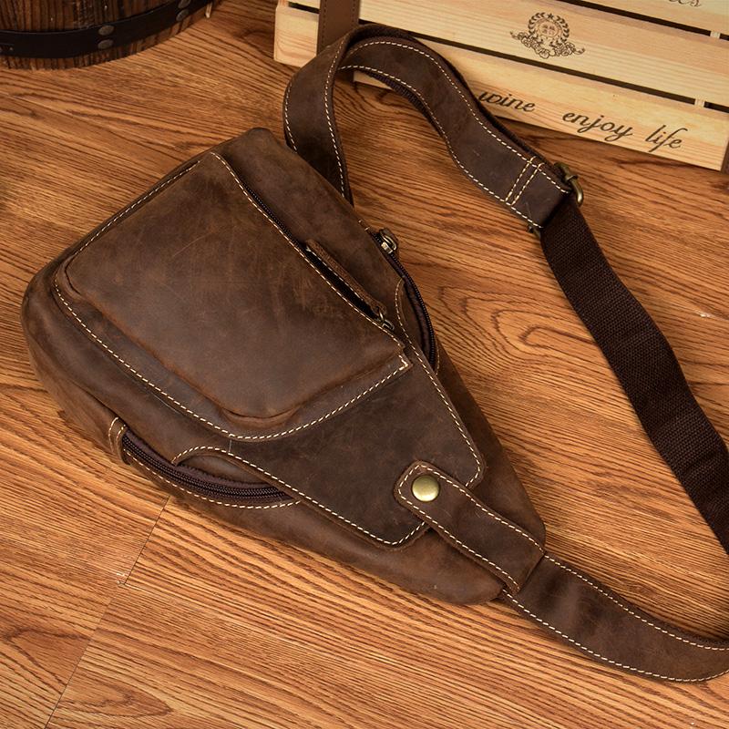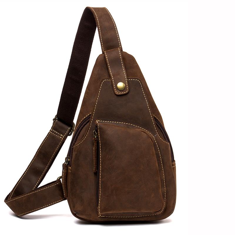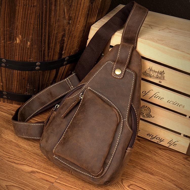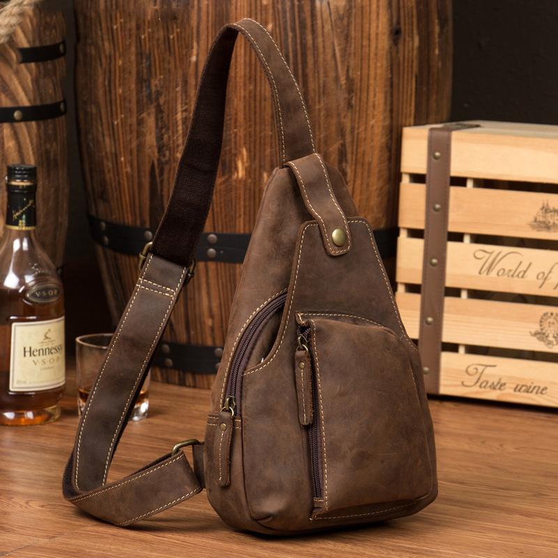 Style: Leather Mens Cool Sling Bag Crossbody Bag Chest Bag for men