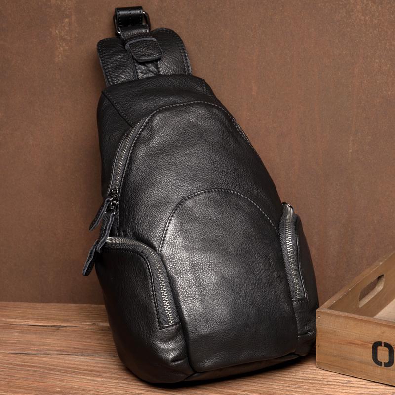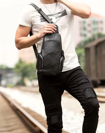 Style: Leather Mens Cool Sling Bag Crossbody Bag Chest Bag for men