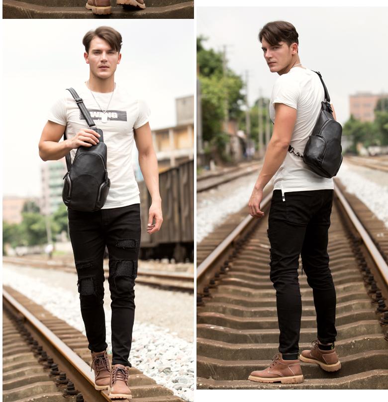 Design: Leather Mens Cool Sling Bag Crossbody Bag Chest Bag for men