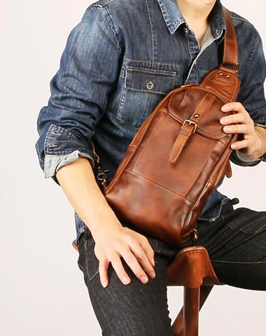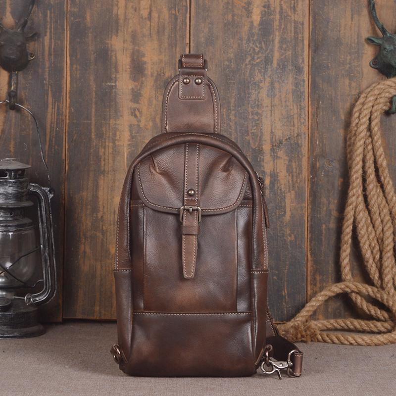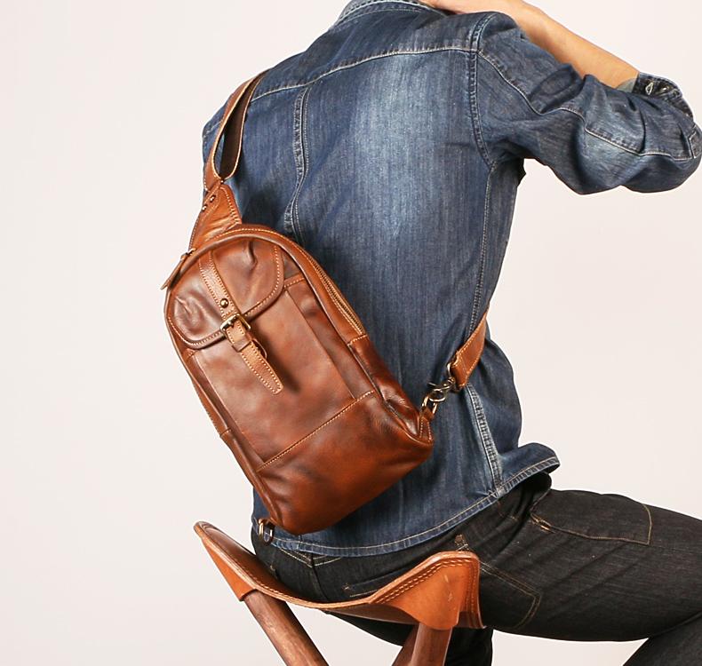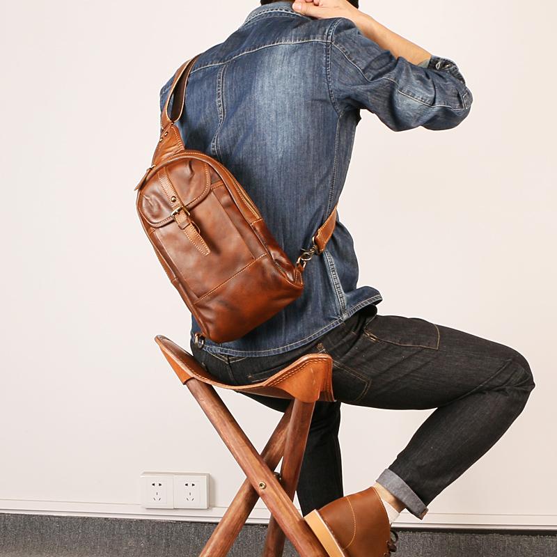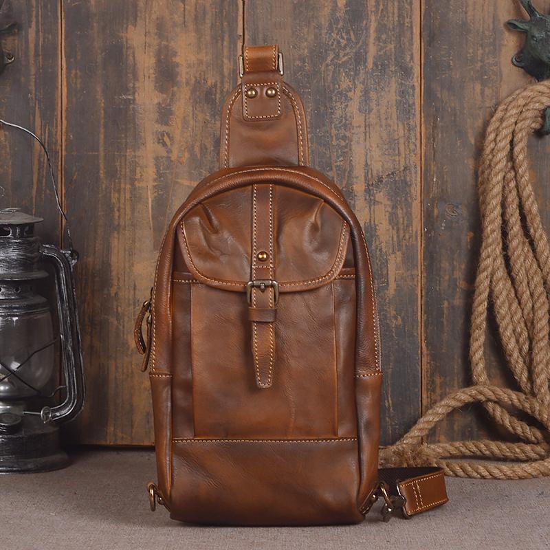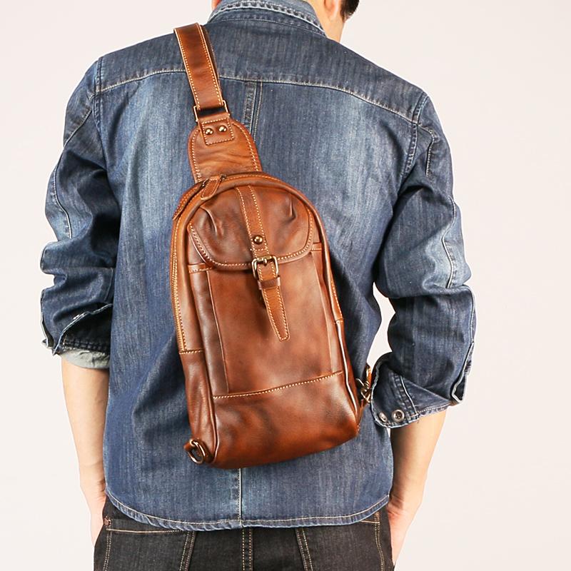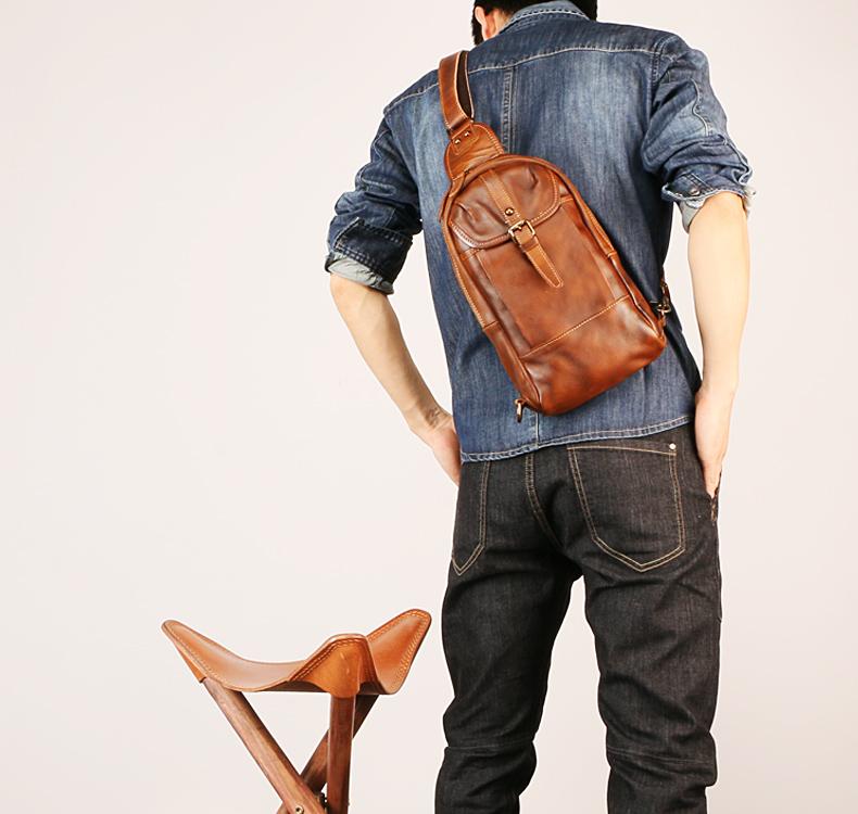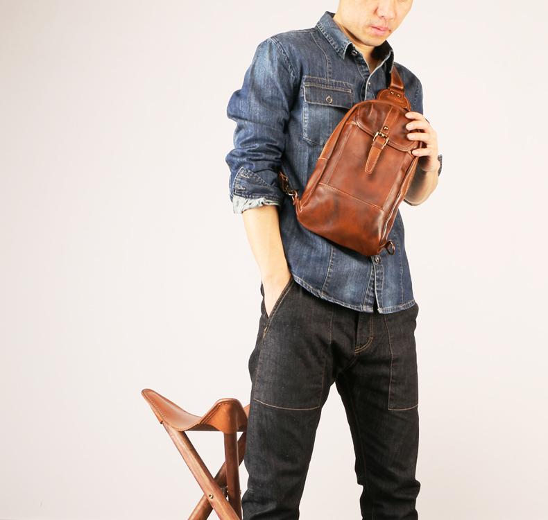 Design: Leather Mens Sling Bag Sling Shoulder Bag Sling Backpack for men