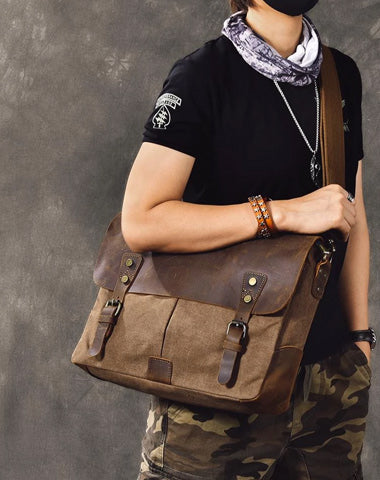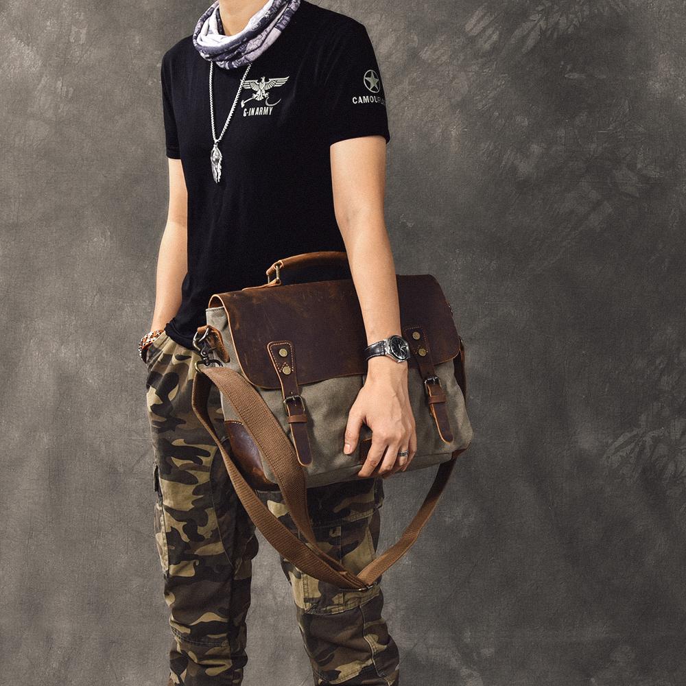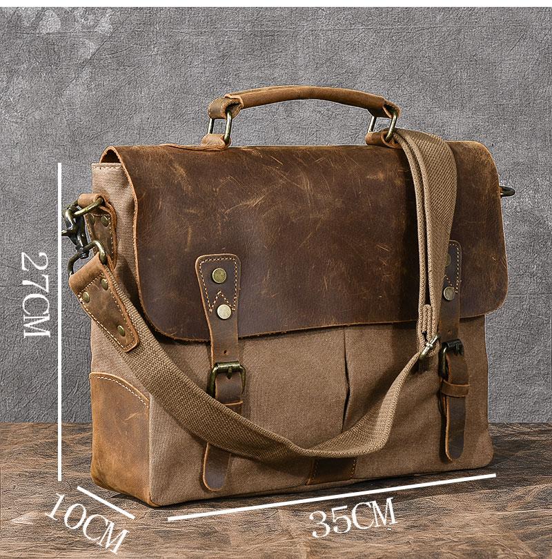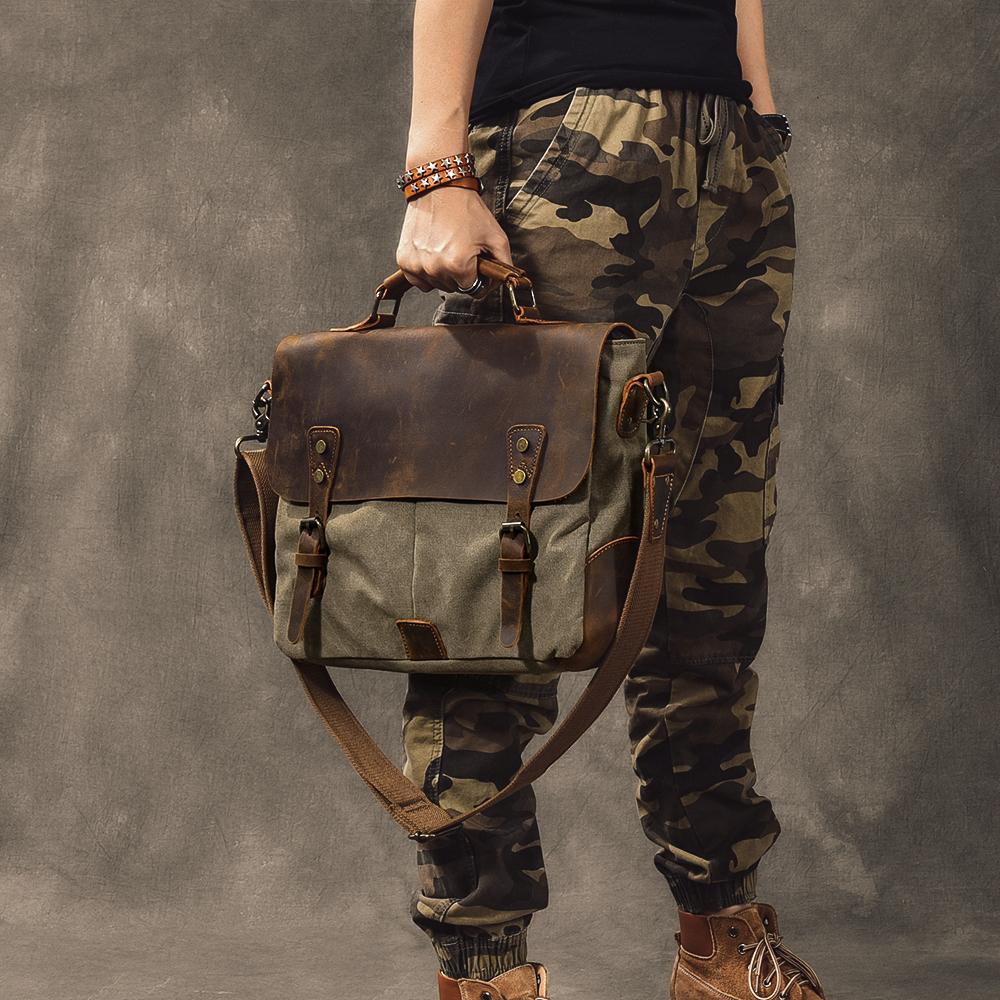 Style: Leather Mens Womens 14" Large Shoulder Bag Green Tote Bag Large Side Bag Brown Messenger Bag For Men
