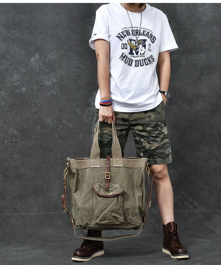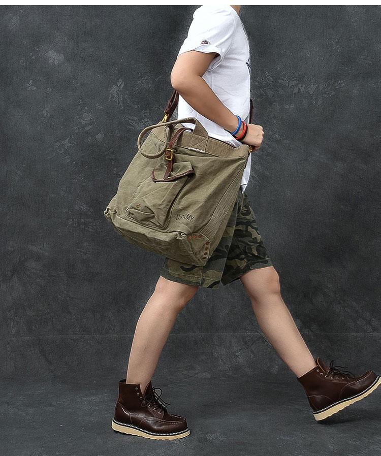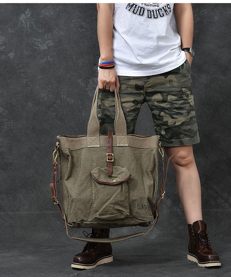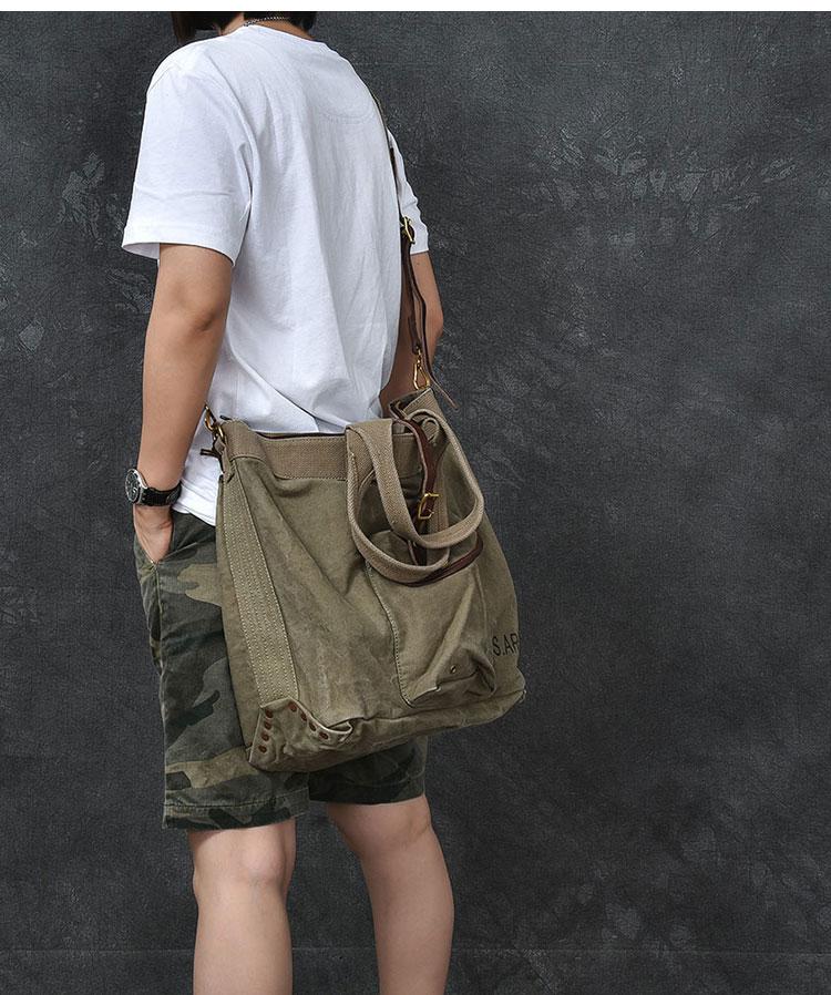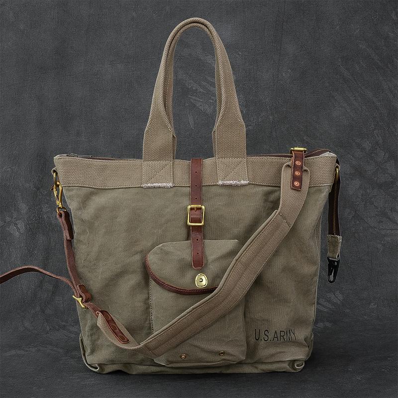 Style: Leather Mens Womens 15" Large Shoulder Bag Army Green Tote Bag Large Side Bag For Men