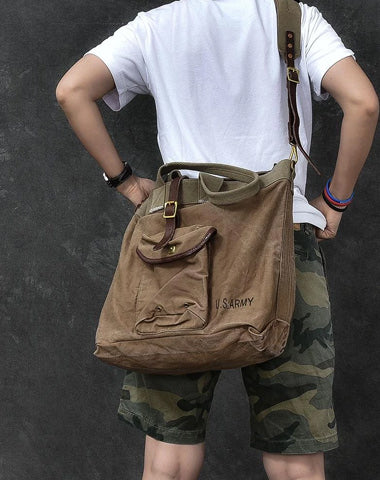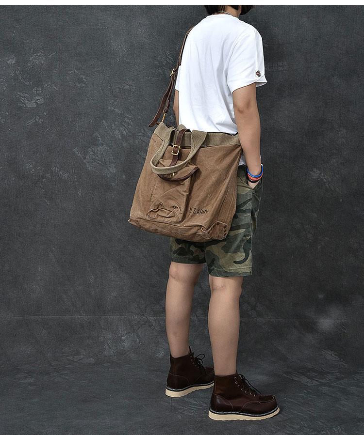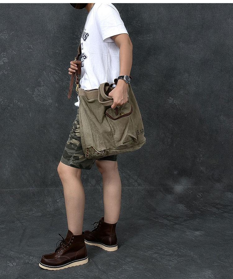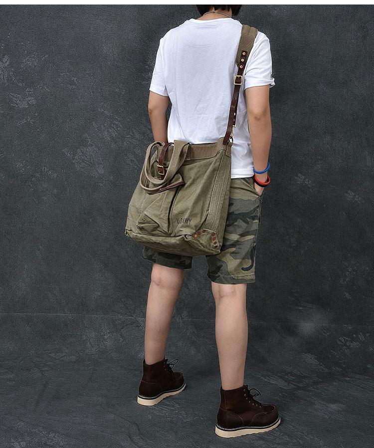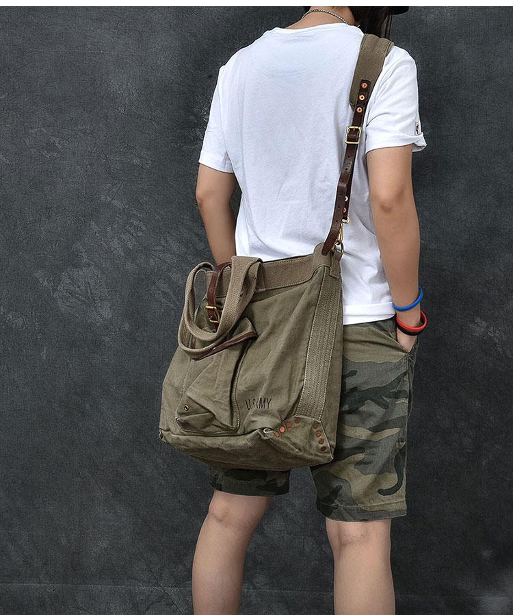 Style: Leather Mens Womens 15" Large Shoulder Bag Army Green Tote Bag Large Side Bag For Men