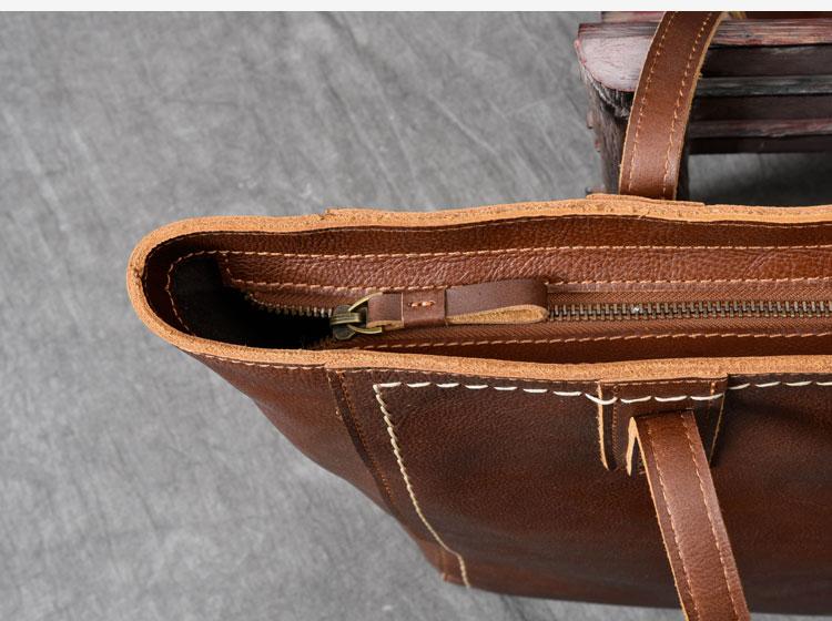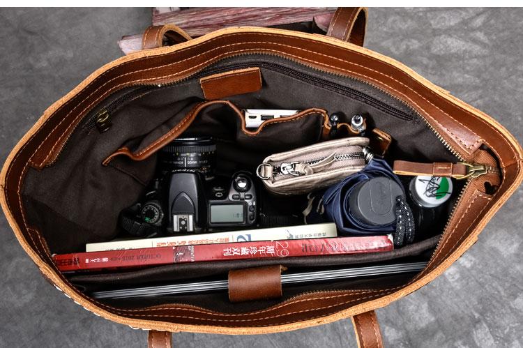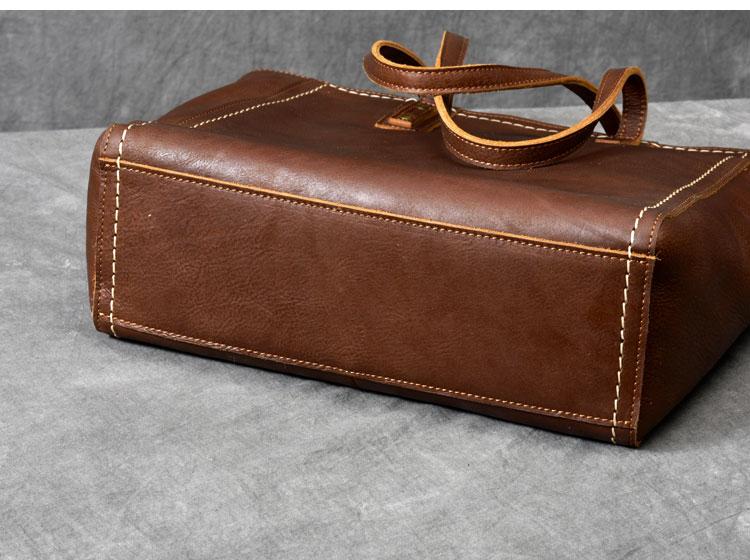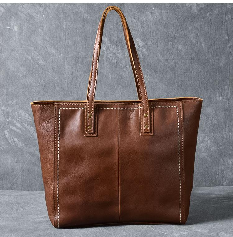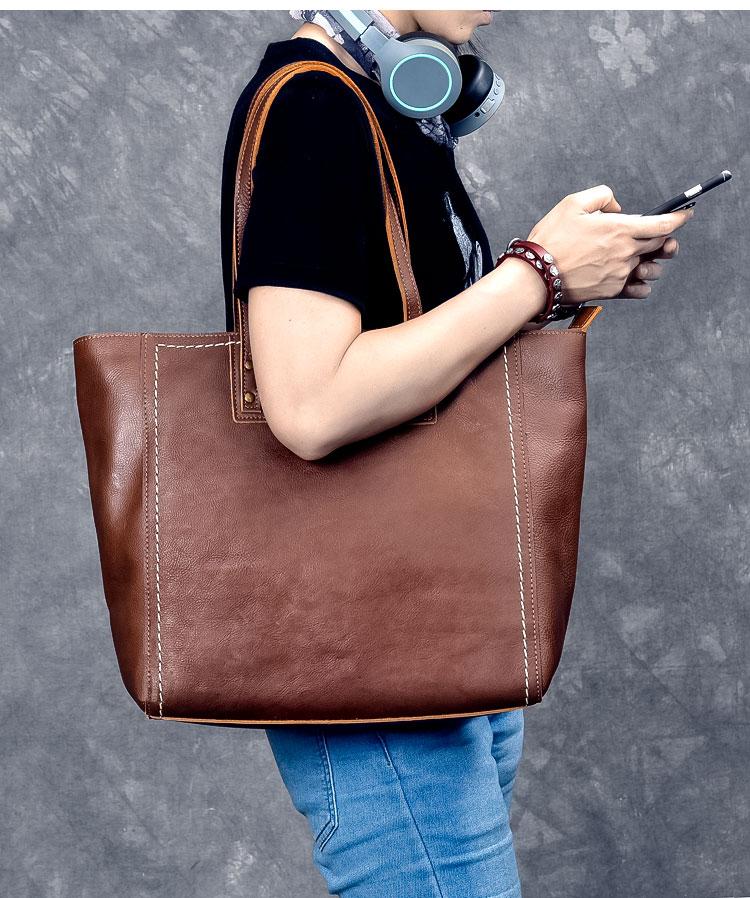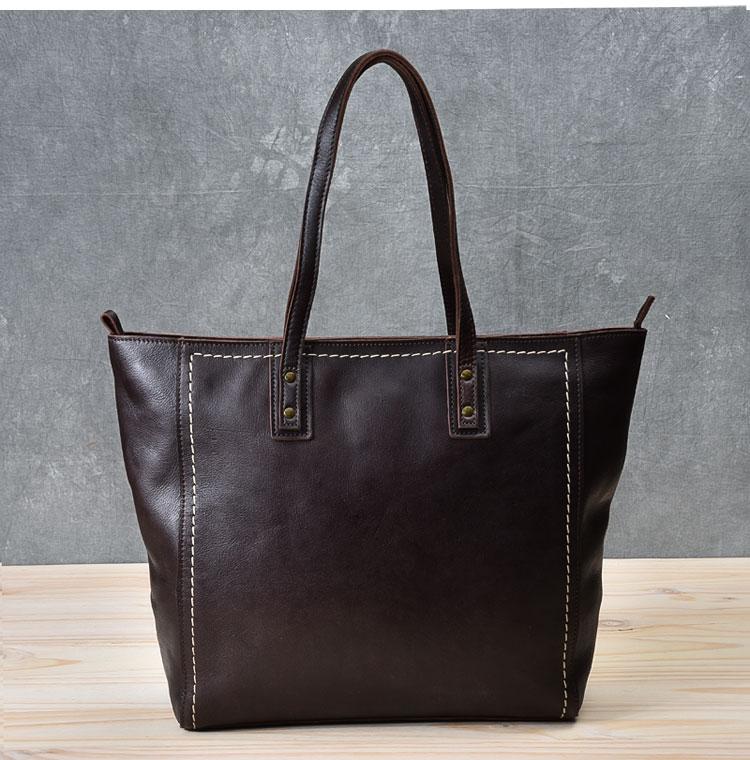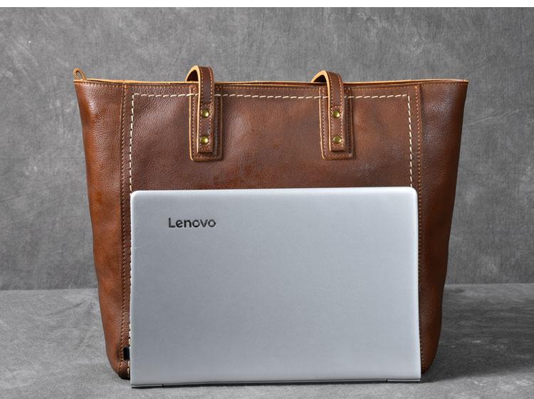 Design: Leather Mens Womens 15" Large Shoulder Bag Brown Tote Bag Large Side Bag Dark Coffee Handbag For Men