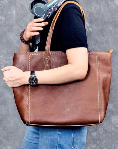 Style: Leather Mens Womens 15" Large Shoulder Bag Brown Tote Bag Large Side Bag Dark Coffee Handbag For Men