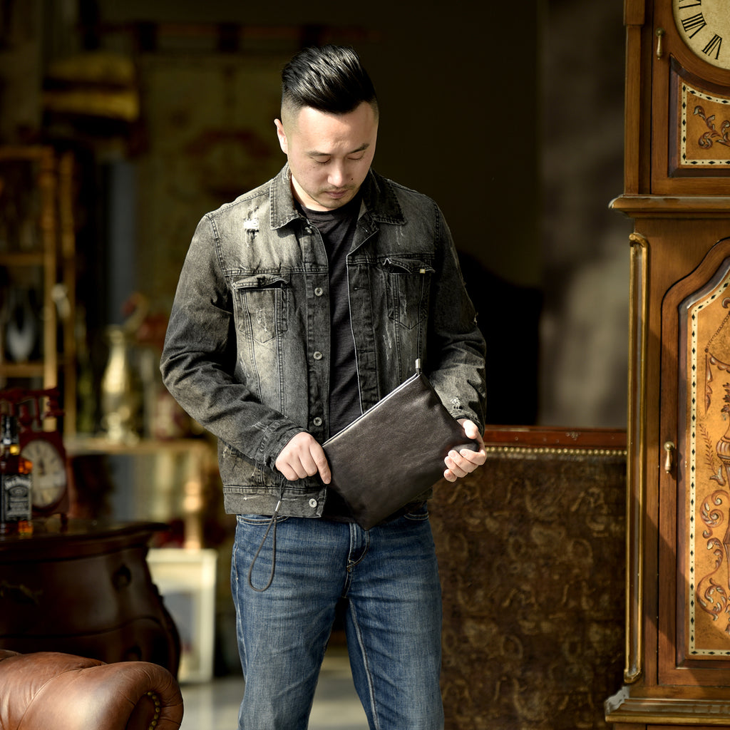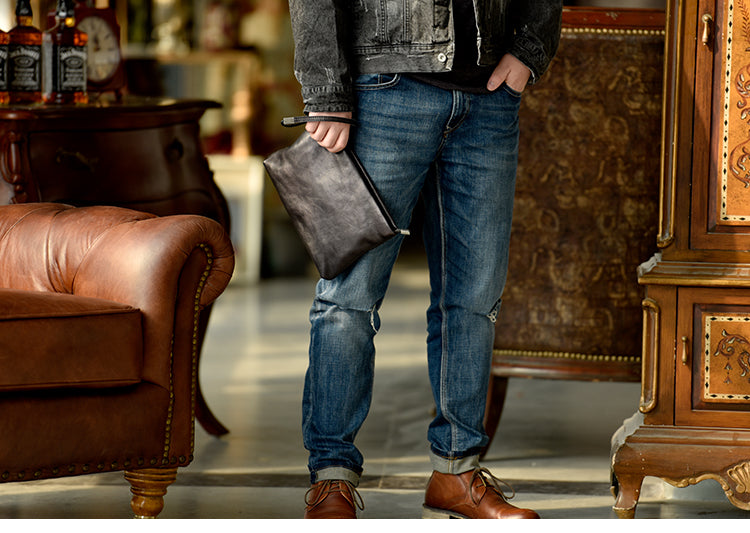 Design: LEATHER MENS Wristlet Wallet Zipper Clutch FOR MEN