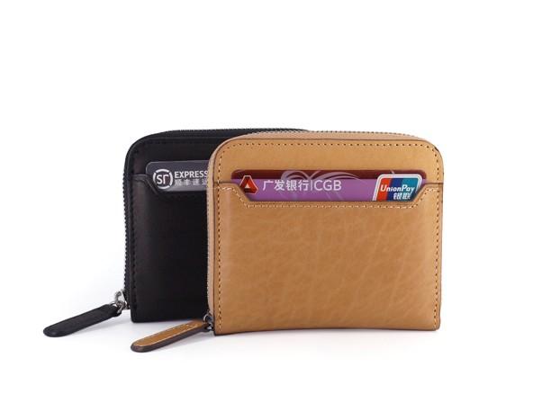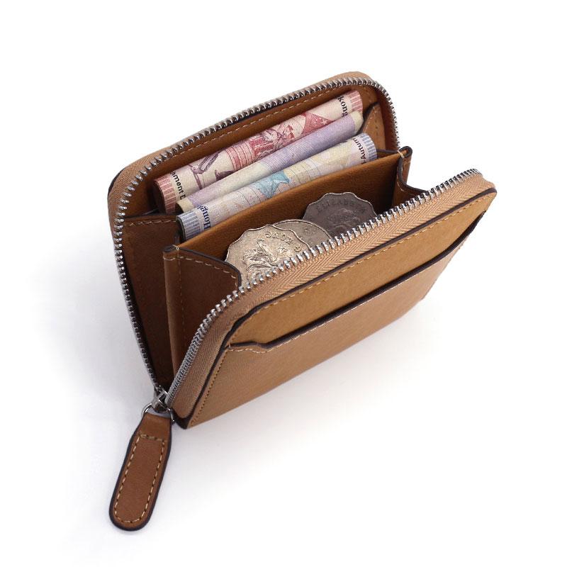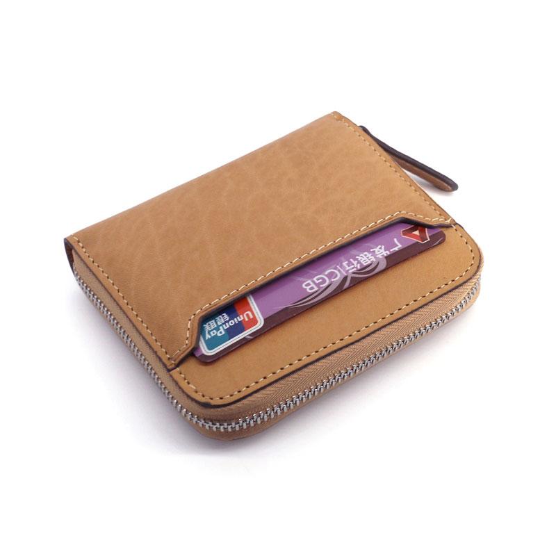 Style: Leather Mens Zipper Front Pocket Wallet Card Wallet Slim Small Change Wallet for Men