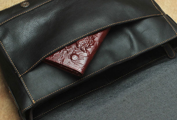 Design: Black Cool Leather Messenger Bag Handbag Shoulder Bag For MenOverview:
