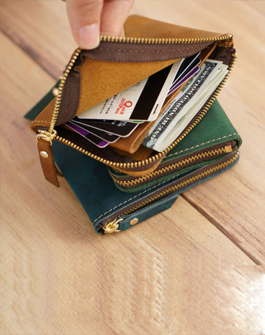 Design: Leather Small Mens Wallet Zipper billfold Front Pocket Wallet Card Wallet Coin Purse for Men
