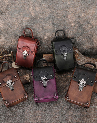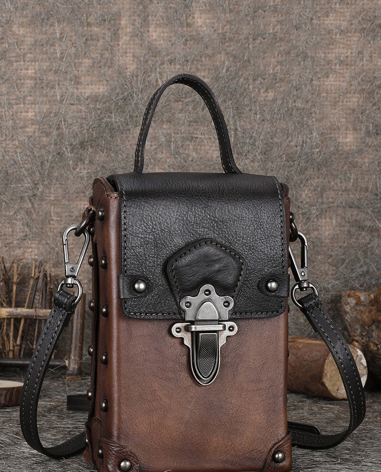 Design: Leather Womens Small Box Shoulder Bag Cube Small Handmade Handbag Purse for Ladies