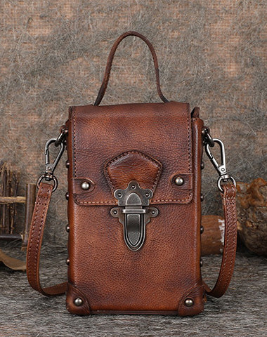 Style: Leather Womens Small Box Shoulder Bag Cube Small Handmade Handbag Purse for Ladies