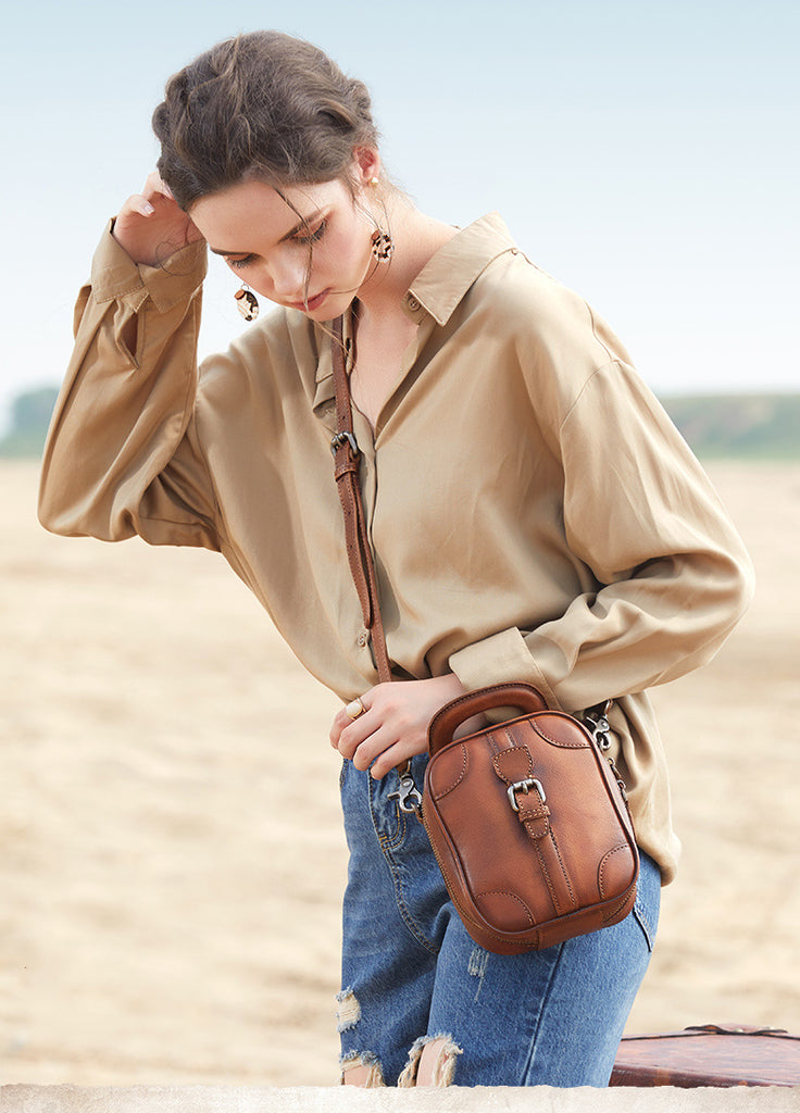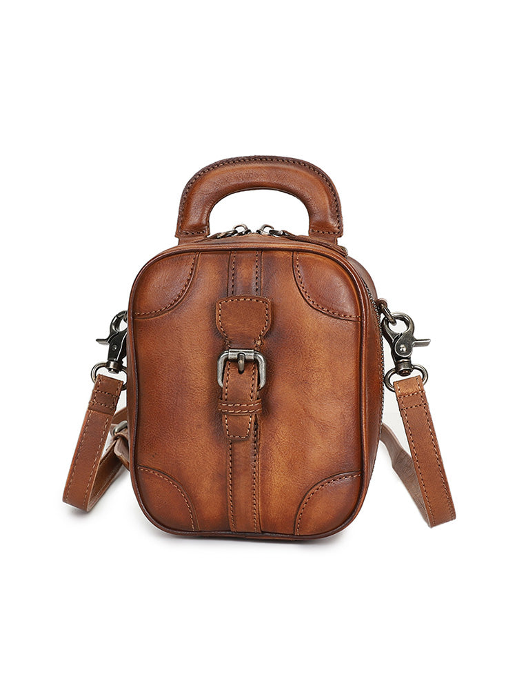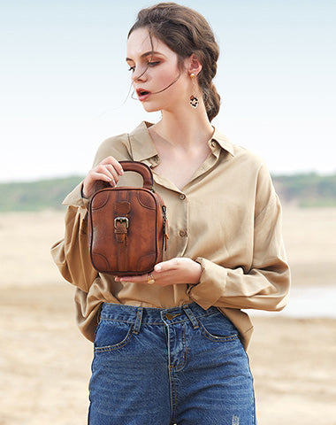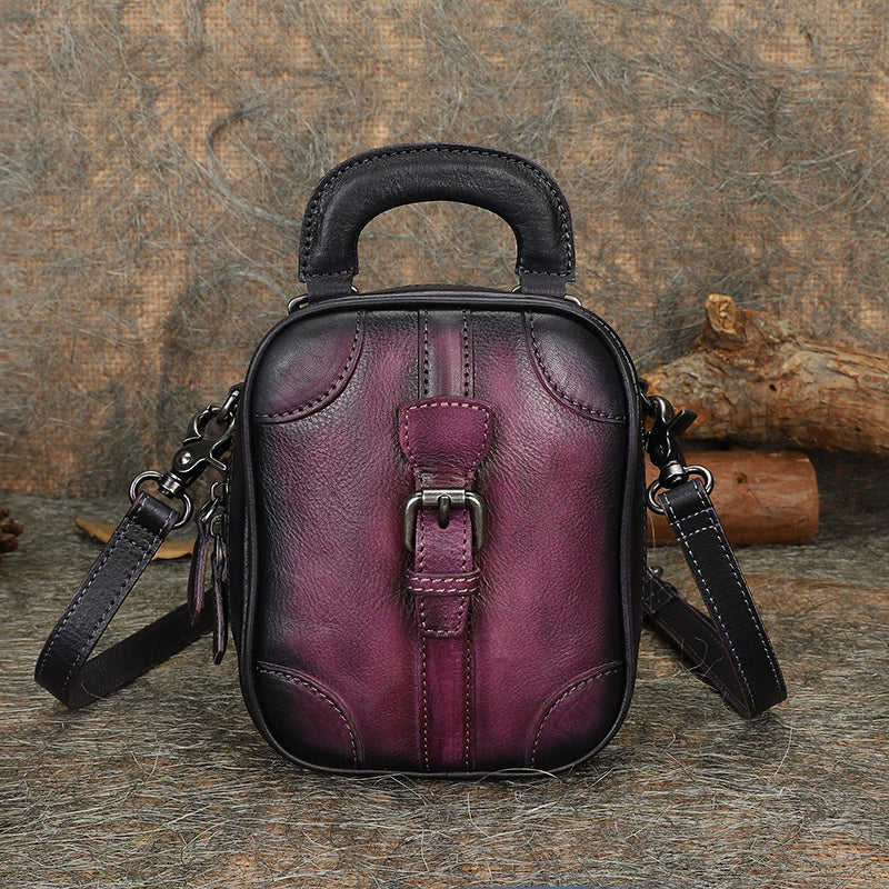 Design: Leather Womens Small Vertical Shoulder Bag Cube Small Handmade Crossbody Handbag Purse for Ladies