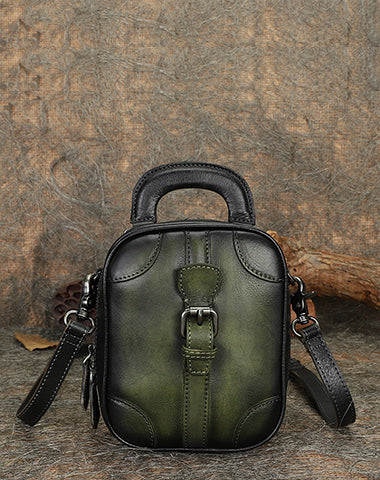 Style: Leather Womens Small Vertical Shoulder Bag Cube Small Handmade Crossbody Handbag Purse for Ladies
