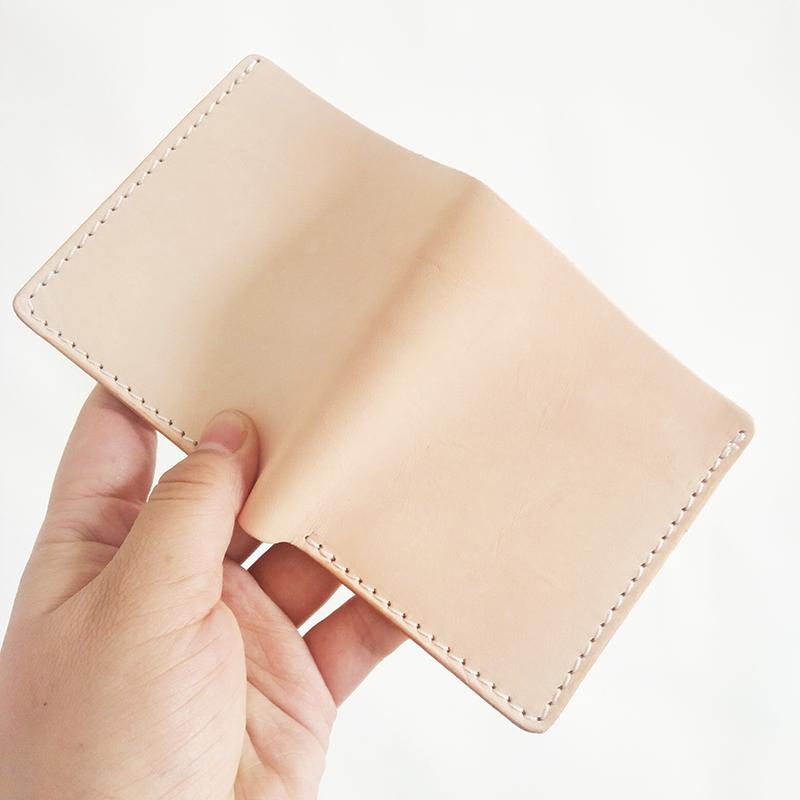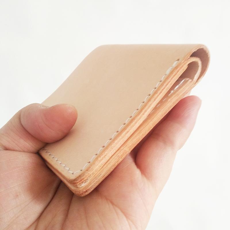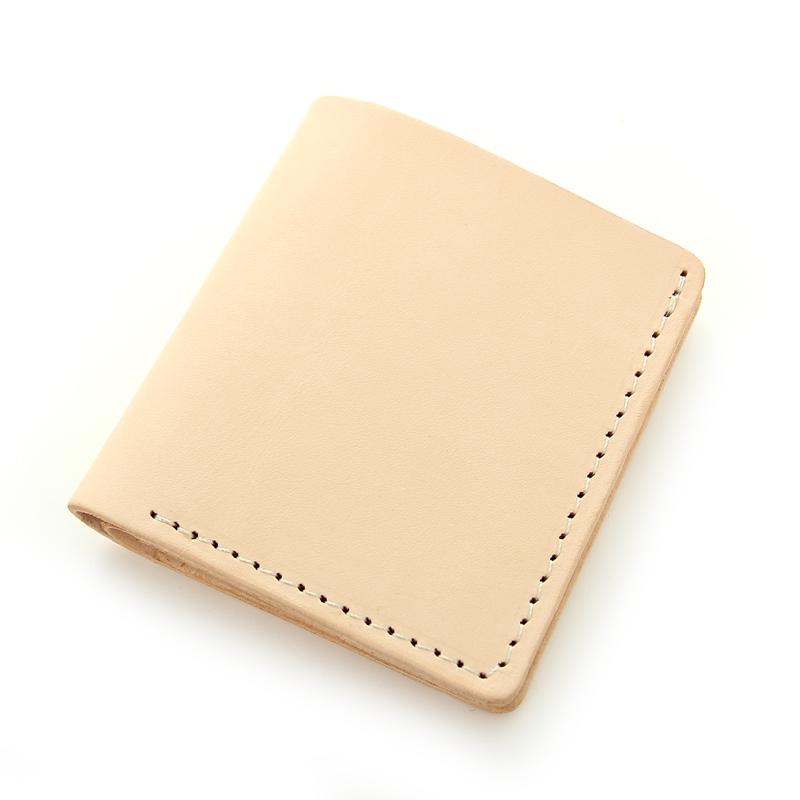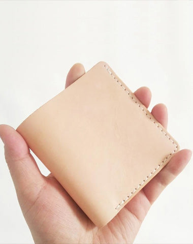 Design: Light Beige Handmade Mens Simple Leather Small Wallets billfold Card Wallet for Men