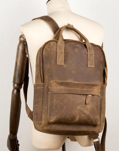 Design: Light Brown Casual Leather Mens 15-inch Travel Backpack Computer Backpack for Men