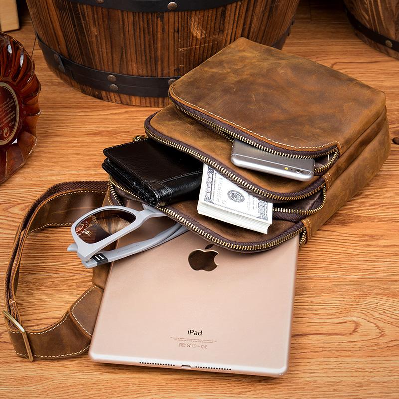 Style: Light Brown Casual Leather Mens 8 inches Sling Bag Chest Bag One Shoulder Backpack for Men
