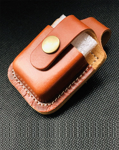 Design: Light Brown Handmade Leather Mens Black Zippo Lighter Holder Lighter Case For Men
