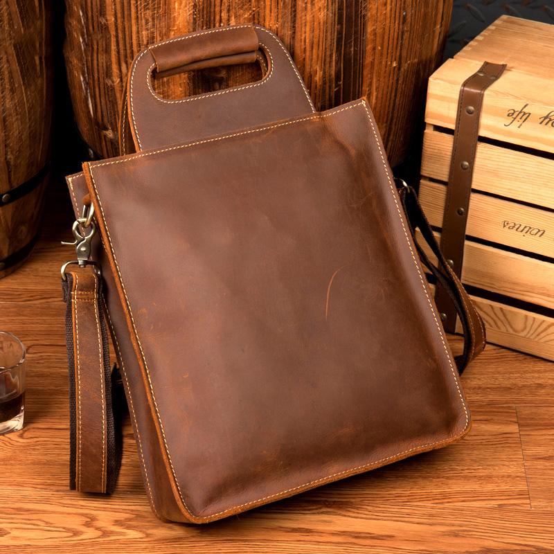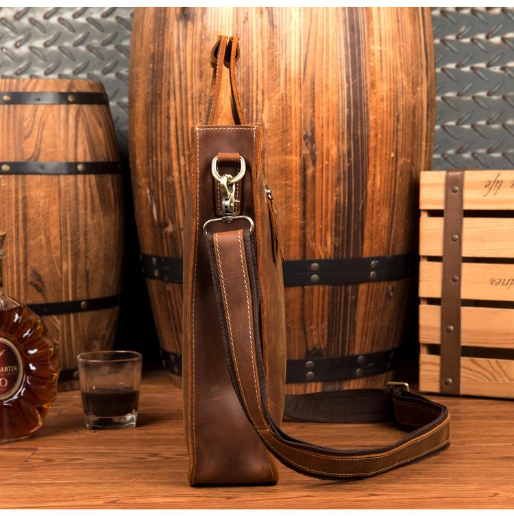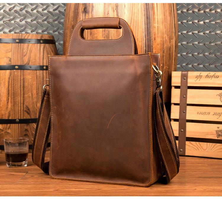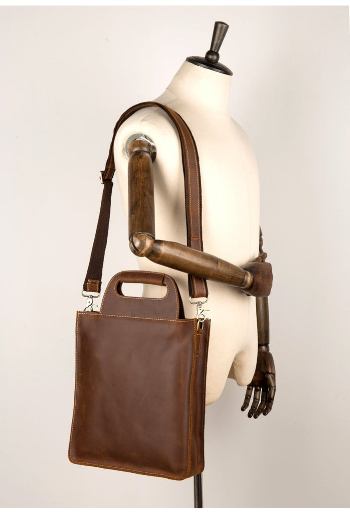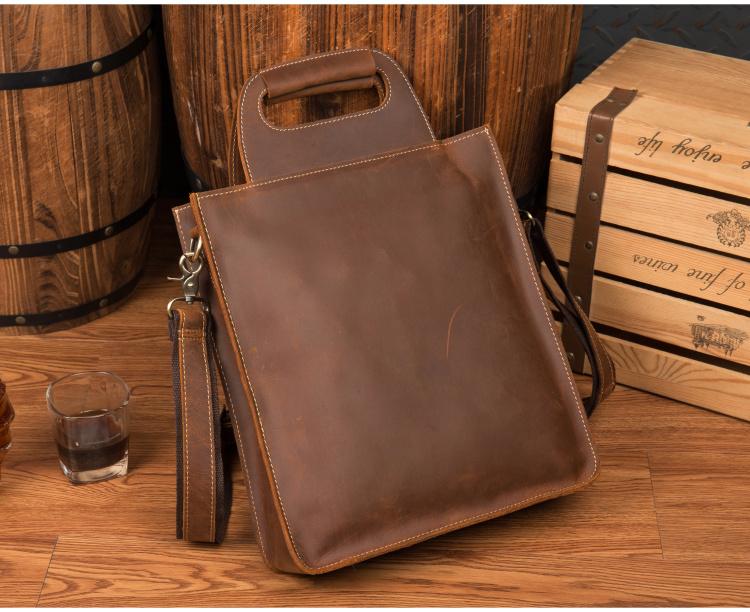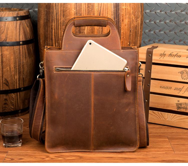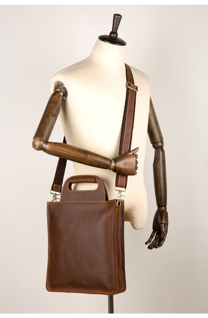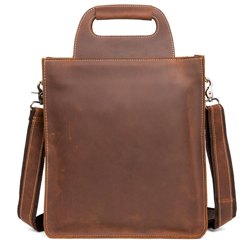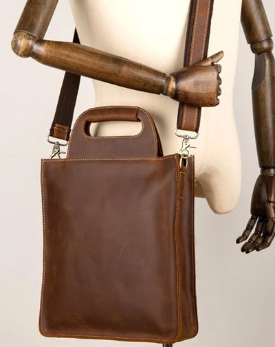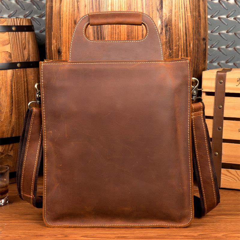 Light Brown Leather Mens 12 inches Briefcase Vertical Laptop Bag Business Handbag Work Bags for Men