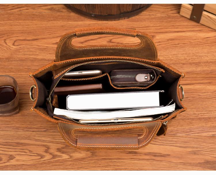 Design: Light Brown Leather Mens 12 inches Briefcase Laptop Bag Business Bags Work Bags for Men