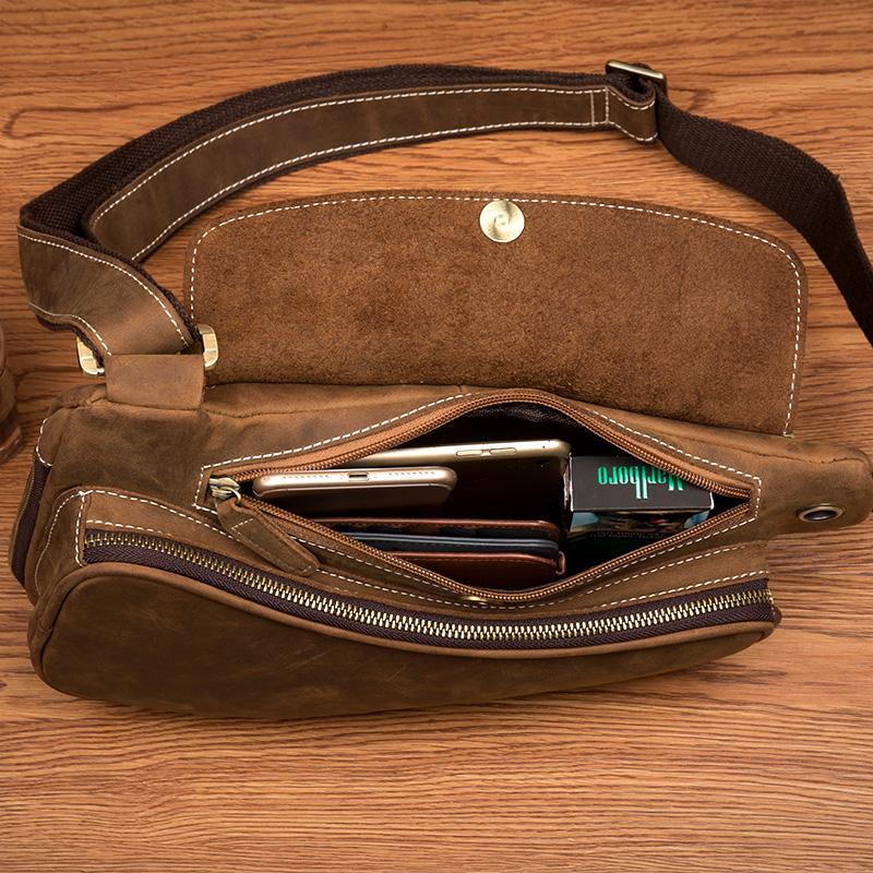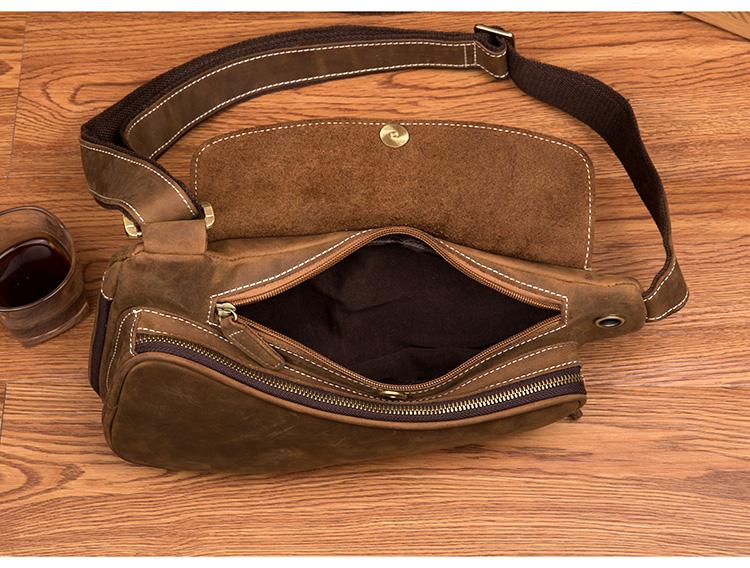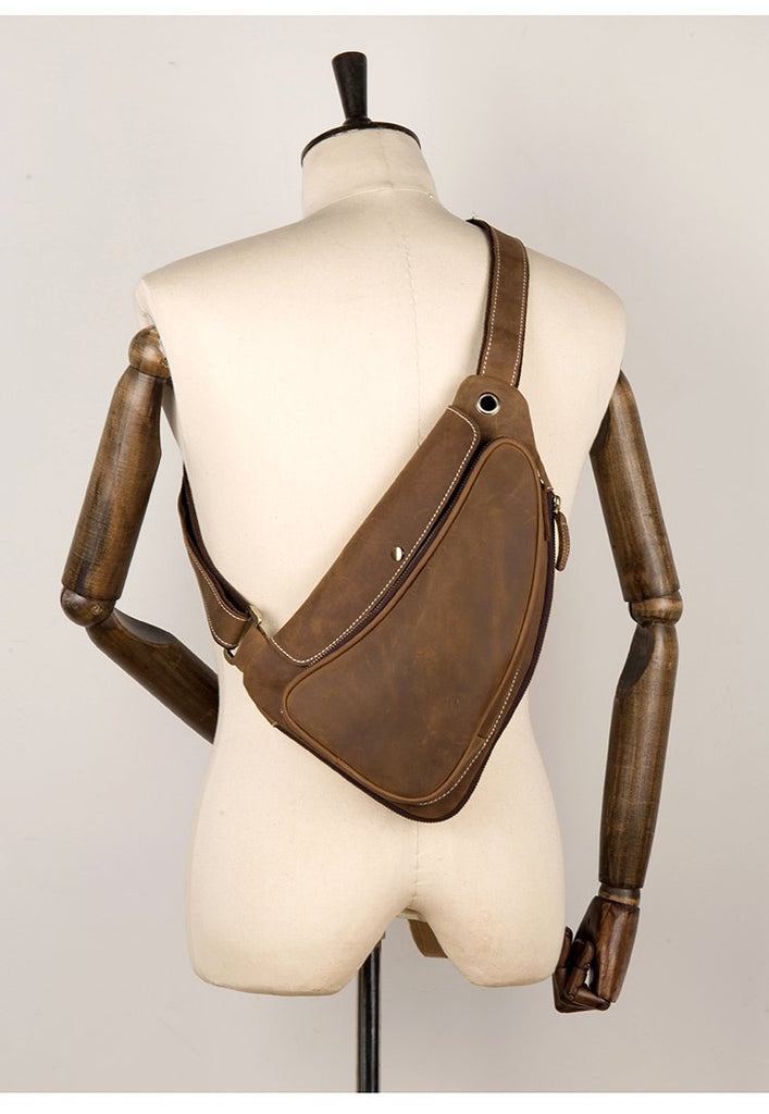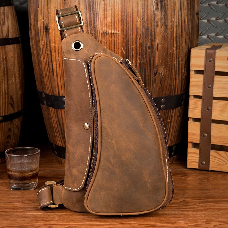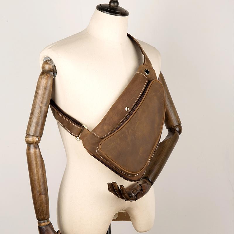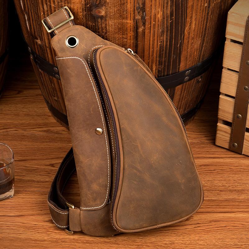 Style: Light Brown Leather Mens 8 inches Cool Sling Bags Crossbody Bag Chest Bag for men