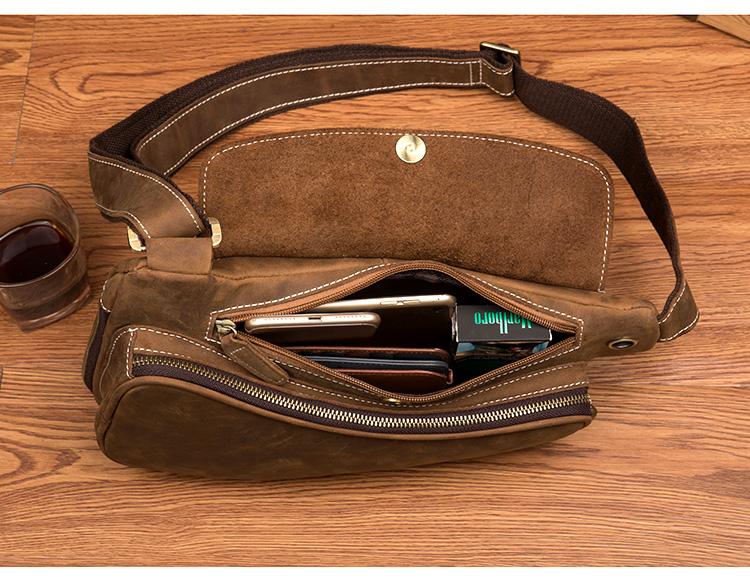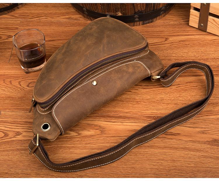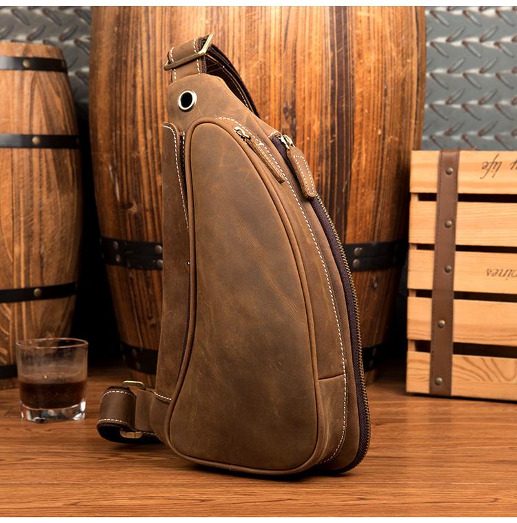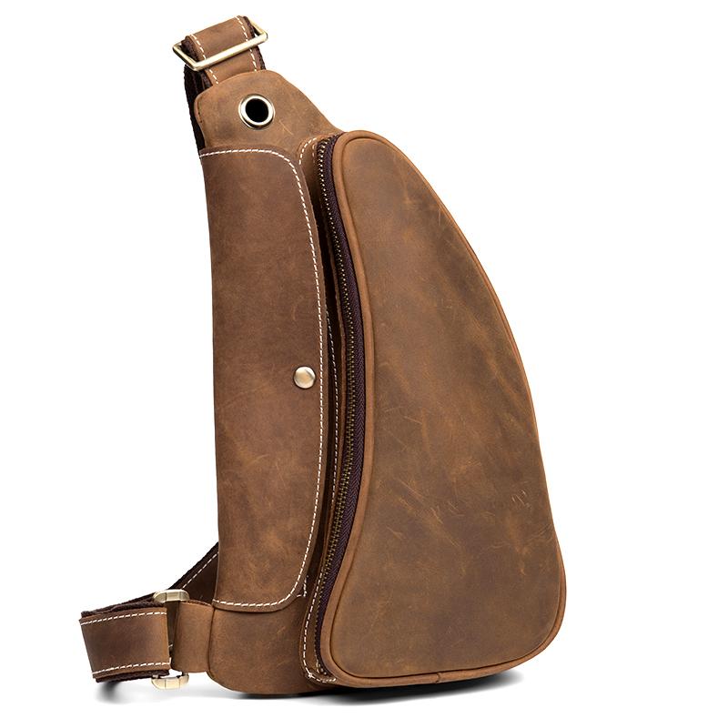 Design: Light Brown Leather Mens 8 inches Cool Sling Bags Crossbody Bag Chest Bag for men