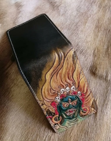 Mahakala Deity Wallet ID Holder Wallet Mens Wallet with ID Window Mahakala Wallet Tooled Leather Wallet Card Wallet with ID Window