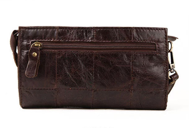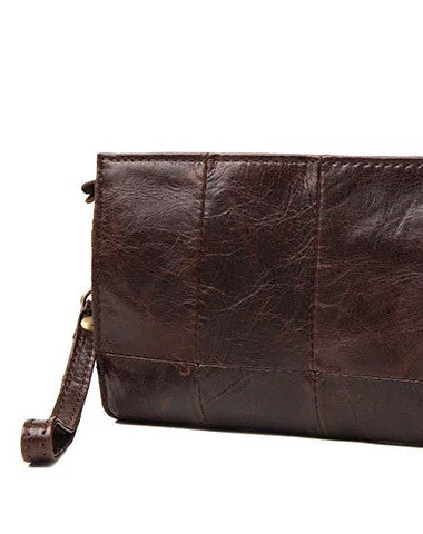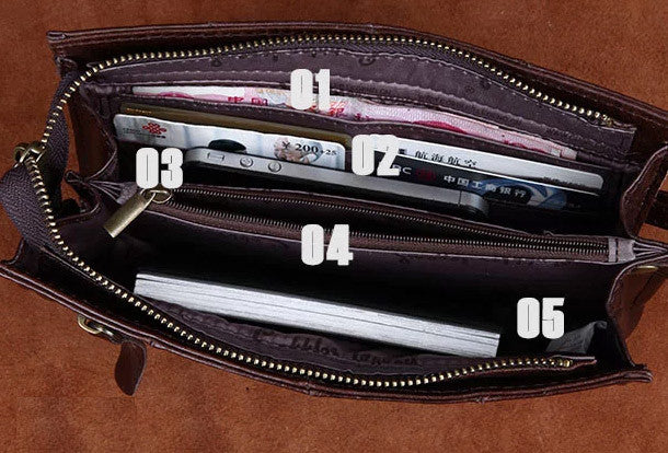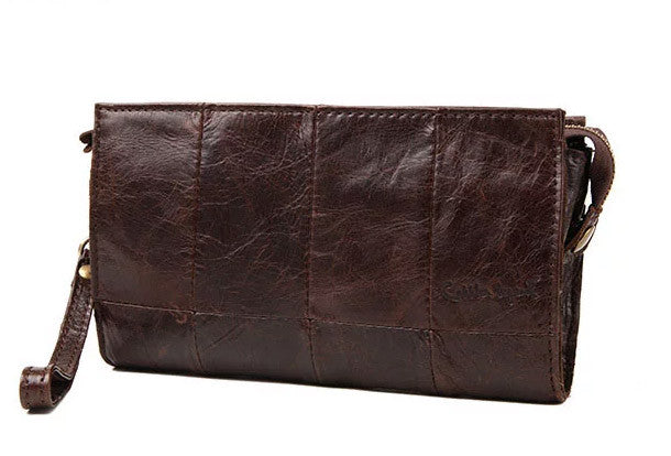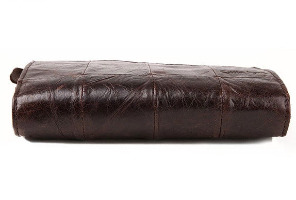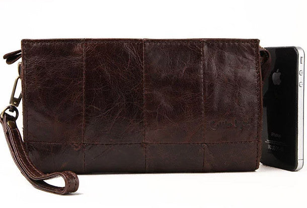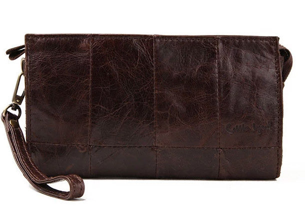 This is Men Leather clutch Vintage Bifold Coffee Long wallet men leather zip clutch bag.The clutch?is bifold,color is coffee.There are 4?full size bill slots/holders, 4?ID/credit card slots/holders, 1 zip coin slot/holder.