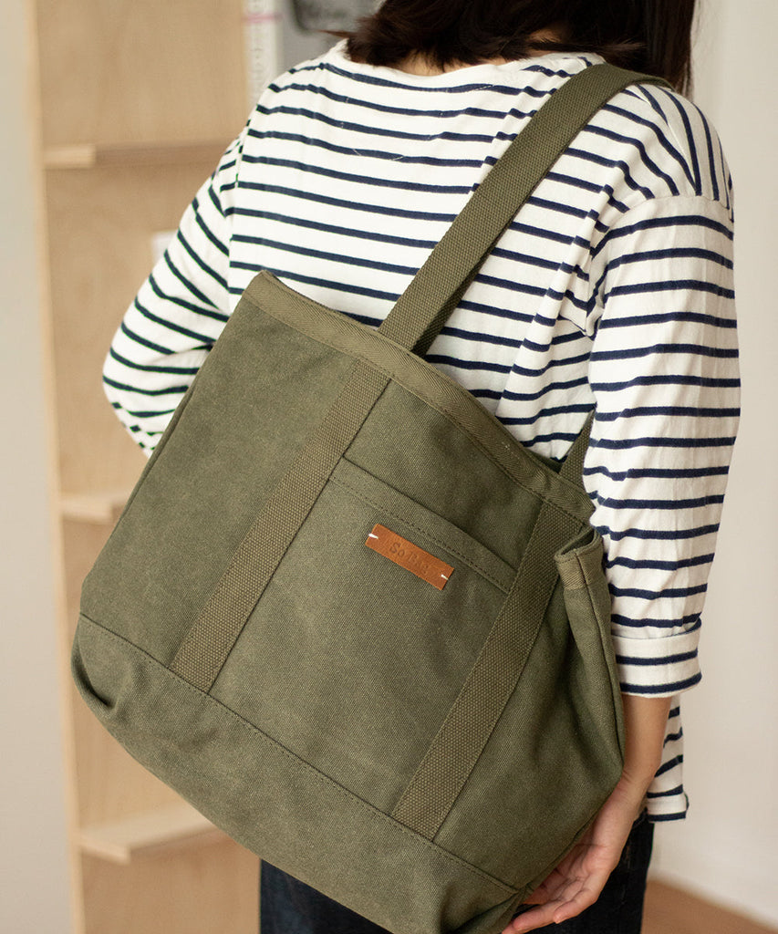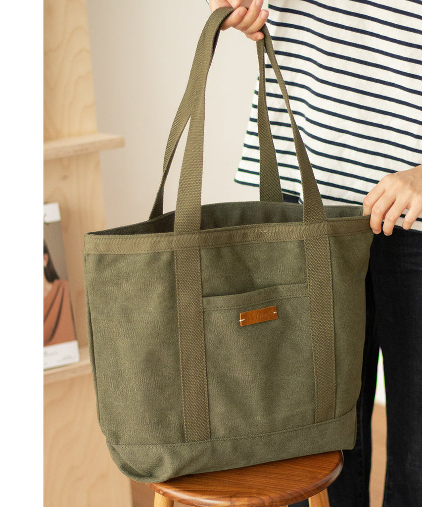 In summary, the Army Green Canvas Large Tote Bag is a practical, stylish, and eco-friendly accessory that meets the needs of both men and women. With its ample space, thoughtful design features, and durable construction, it is a reliable companion for work, daily activities, and shopping.