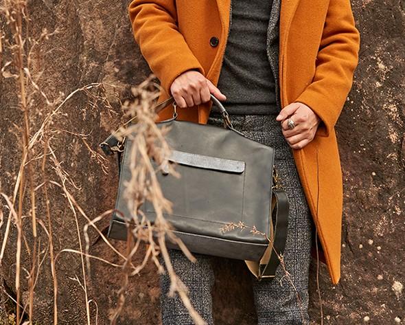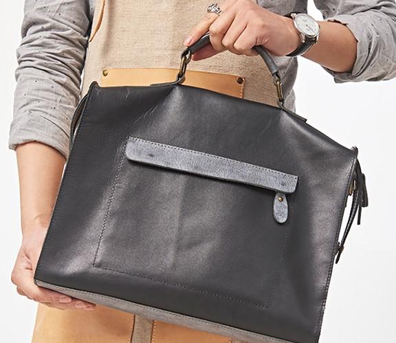 Design: Mens Black Leather Large Briefcase Handbag Work Bag Business Bag for Men