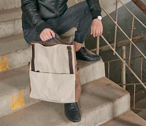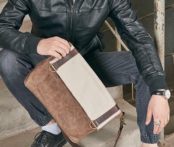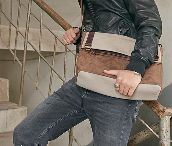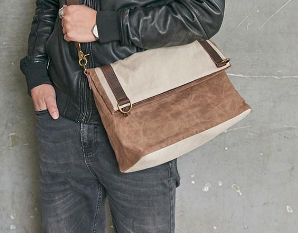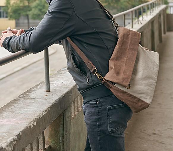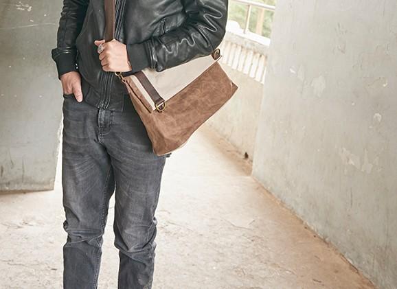 Design: Mens Canvas Gray Cool Side Bag Messenger Bag Canvas Shoulder Bag for Men