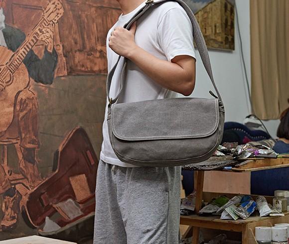Design: Mens Canvas Gray Cool Messenger Bag Side Bag Shoulder Bag for Men