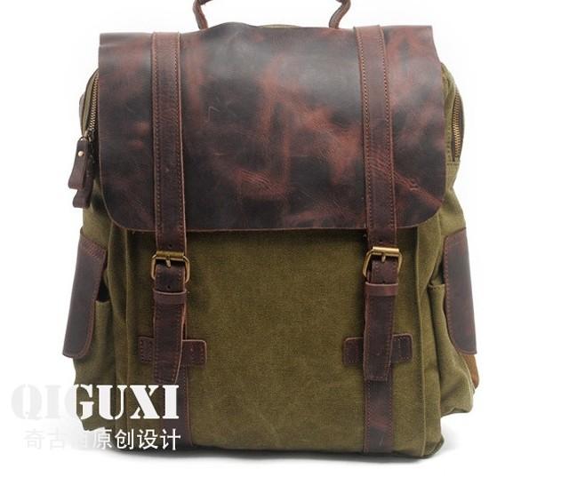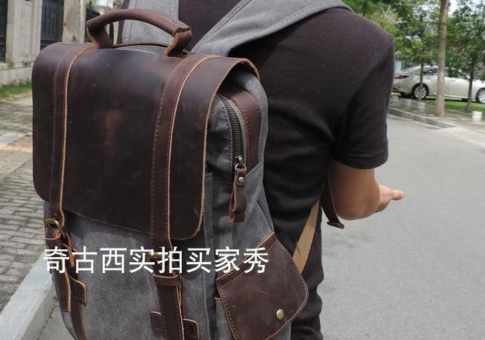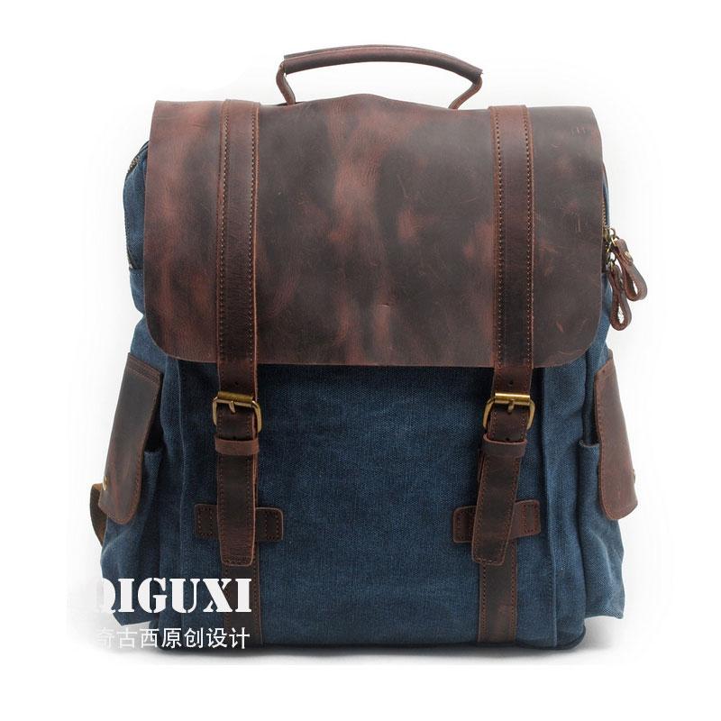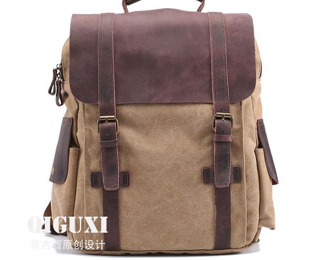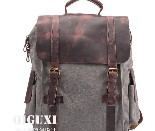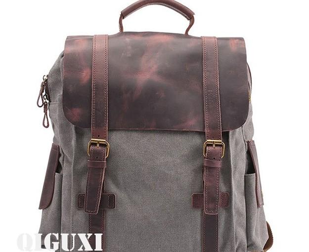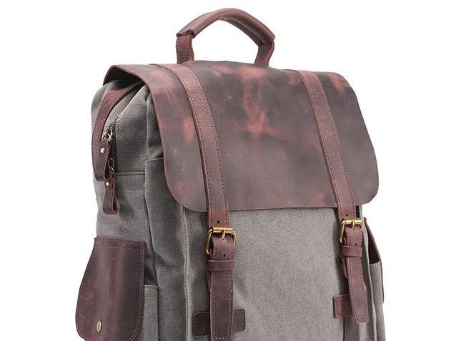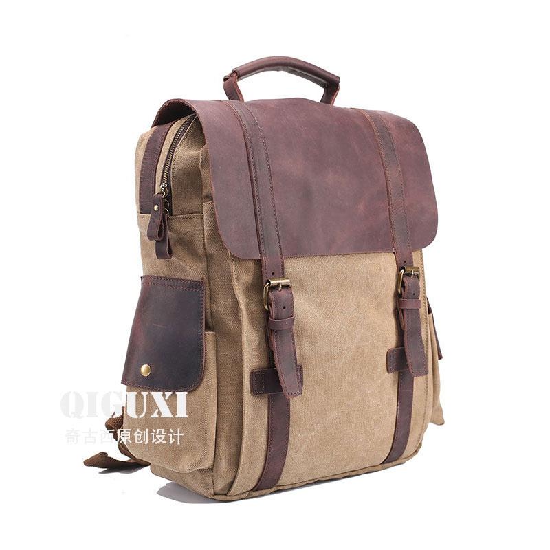 Design: Mens Canvas Leather Backpack Canvas Travel Backpack Canvas School Backpacks for Men