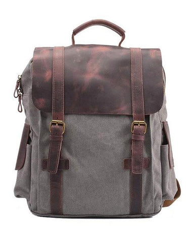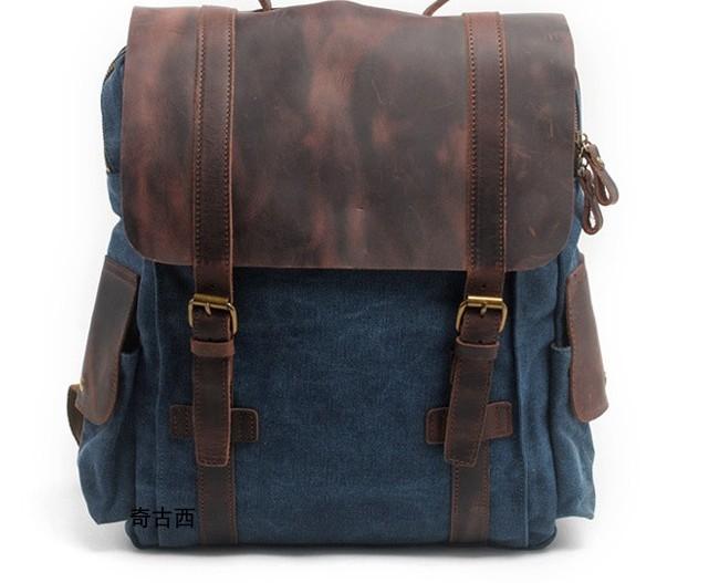 Style: Mens Canvas Leather Backpack Canvas Travel Backpack Canvas School Backpacks for Men