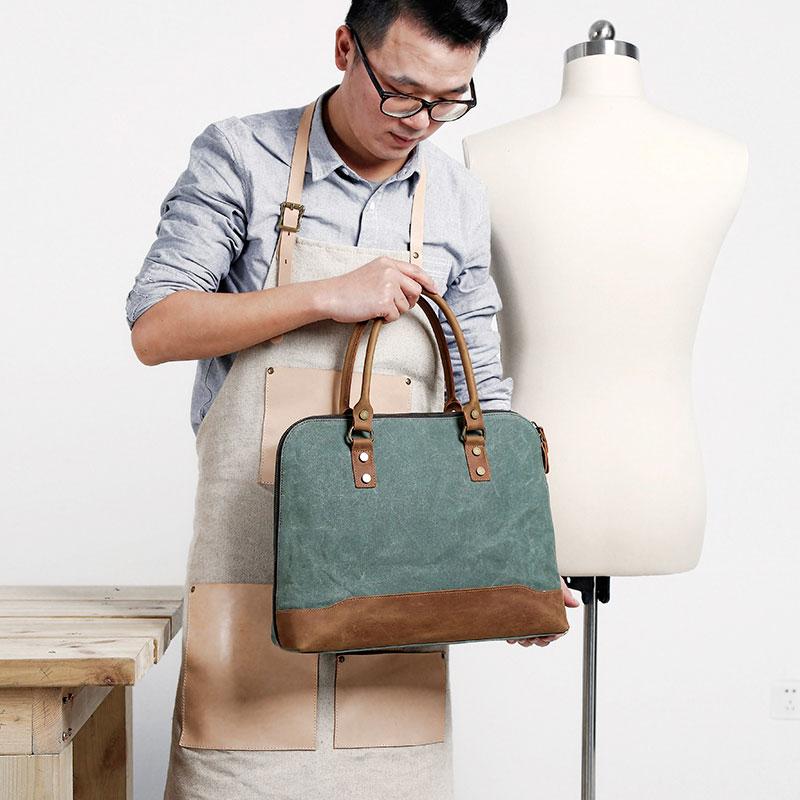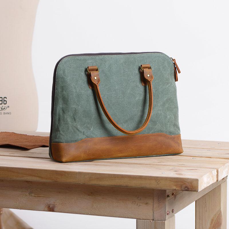 Design: Mens Canvas Leather Briefcase Handbag Work Bag Business Bag for Men