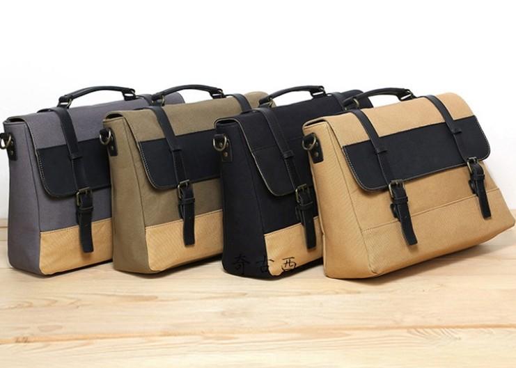 Design: Mens Canvas Leather Briefcase Handbag Work Bag Business Bag for Men