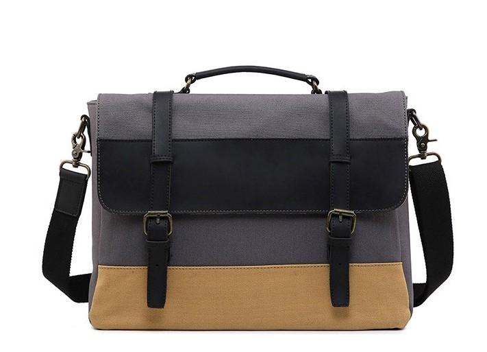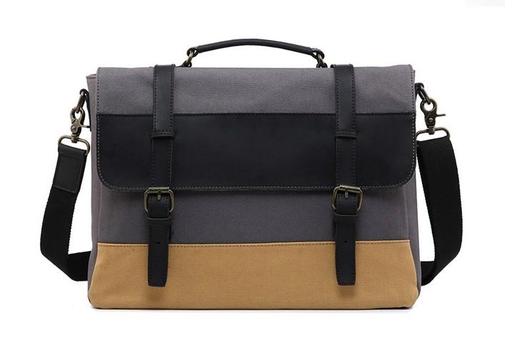 Style: Mens Canvas Leather Briefcase Handbag Work Bag Business Bag for Men