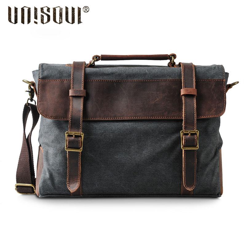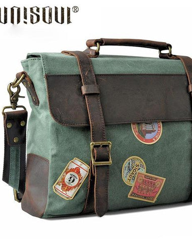 Design: Mens Canvas Leather Cool Side Bag Messenger Bag Canvas Handbag for Men