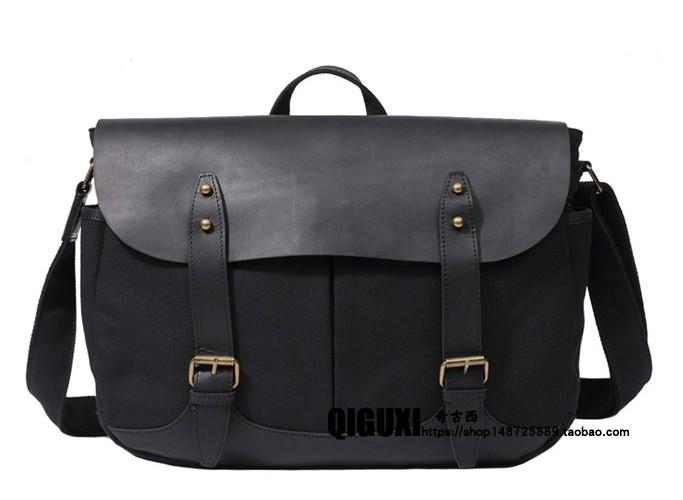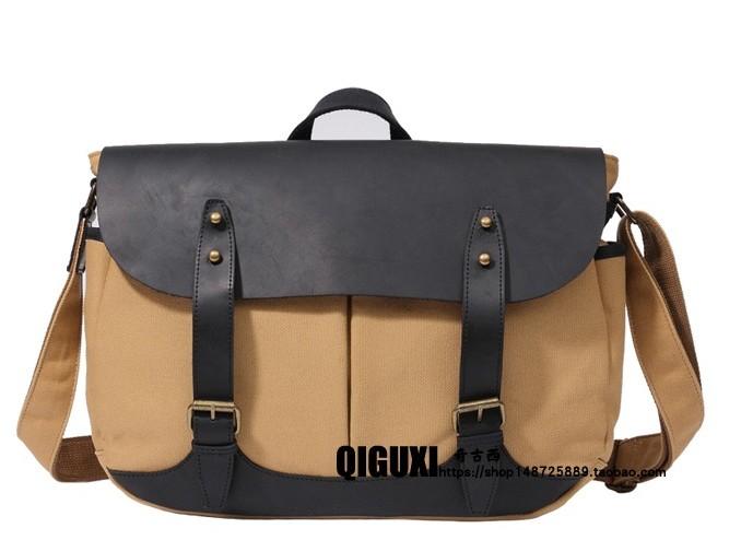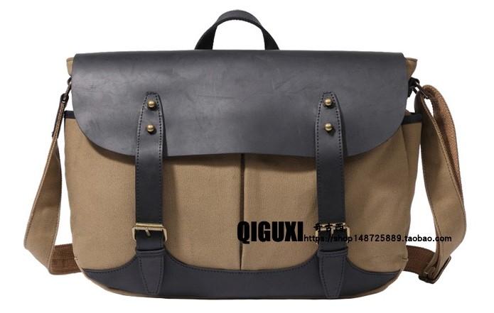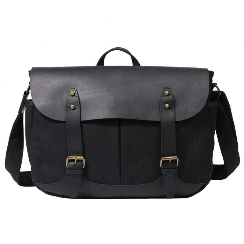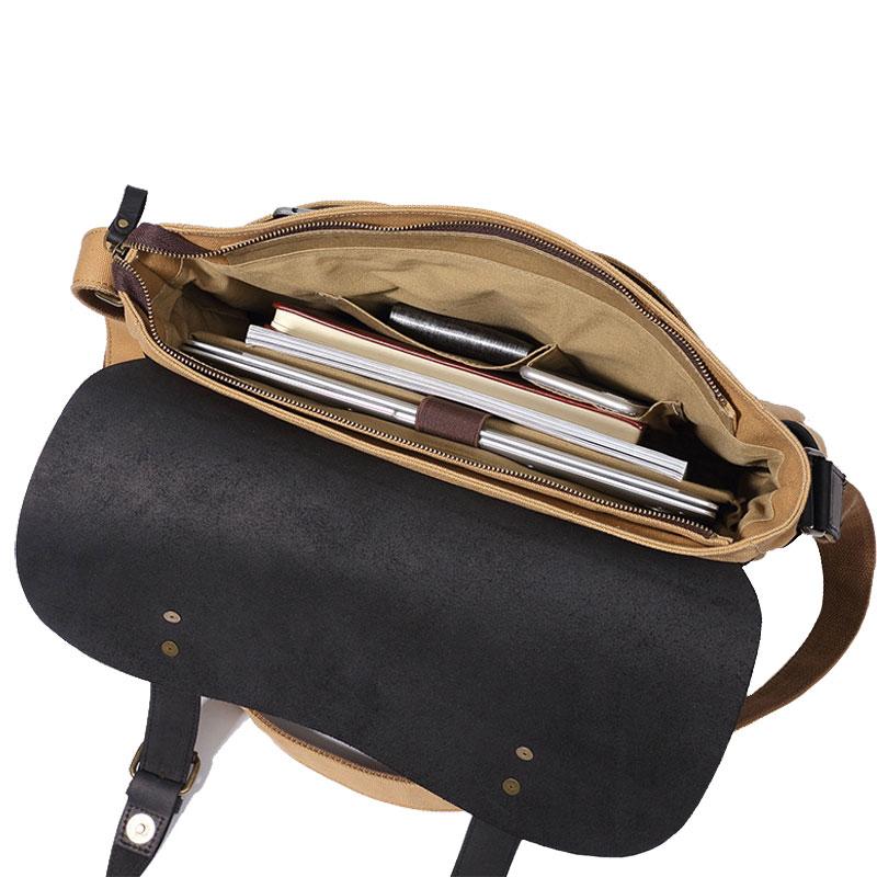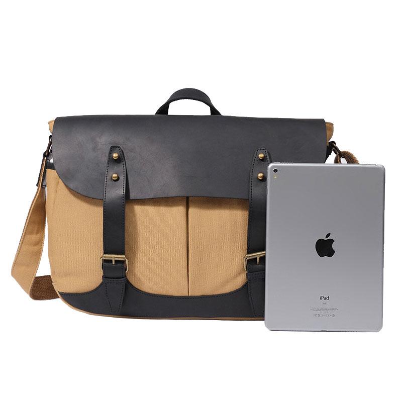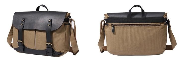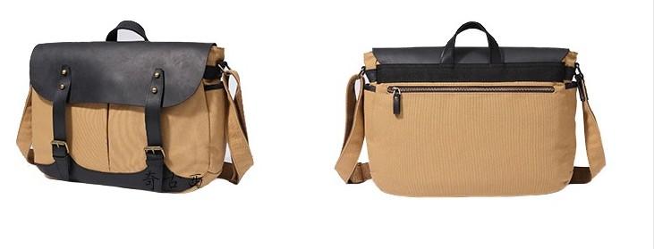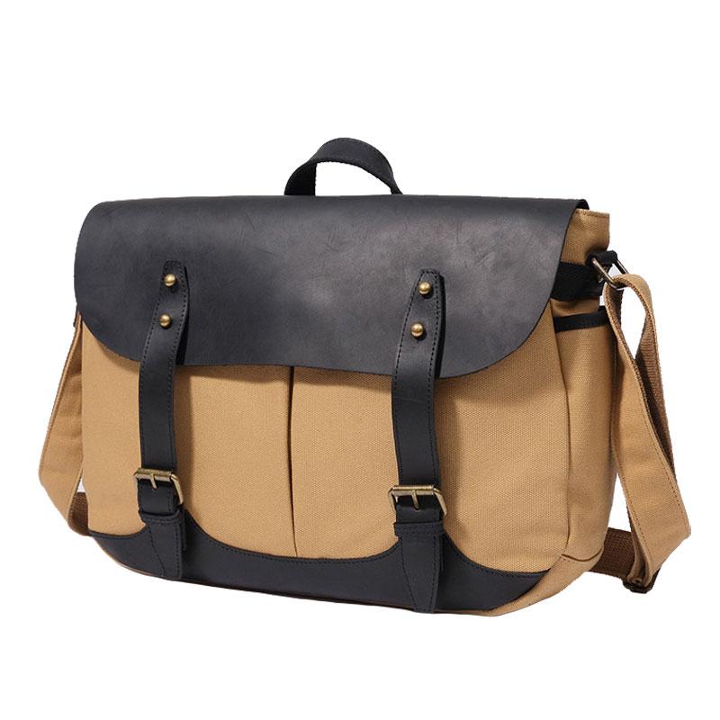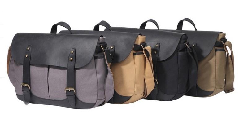 Design: Mens Canvas Leather Saddle Side Bag Messenger Bag Canvas Shoulder Bag for Men