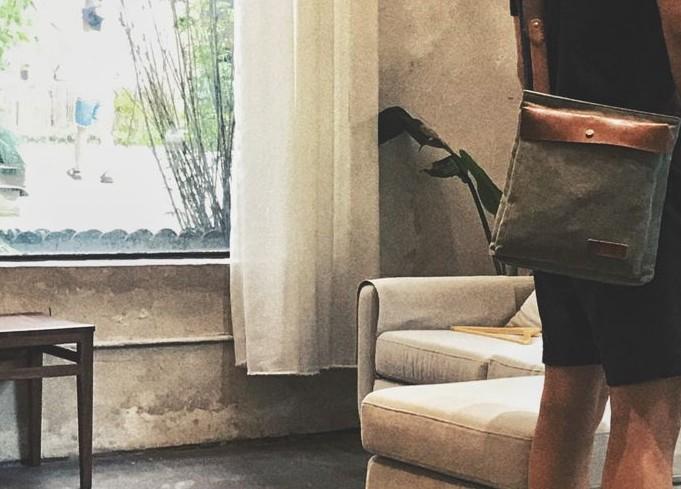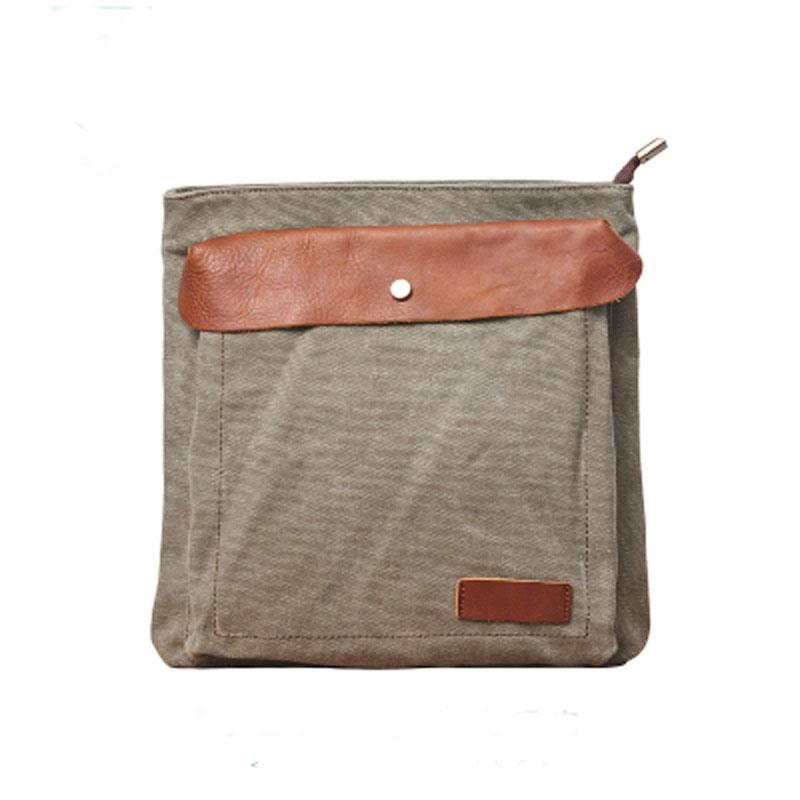 Design: Mens Canvas Leather Square Side Bag Messenger Bag Canvas Shoulder Bag for Men