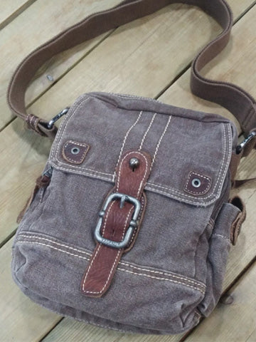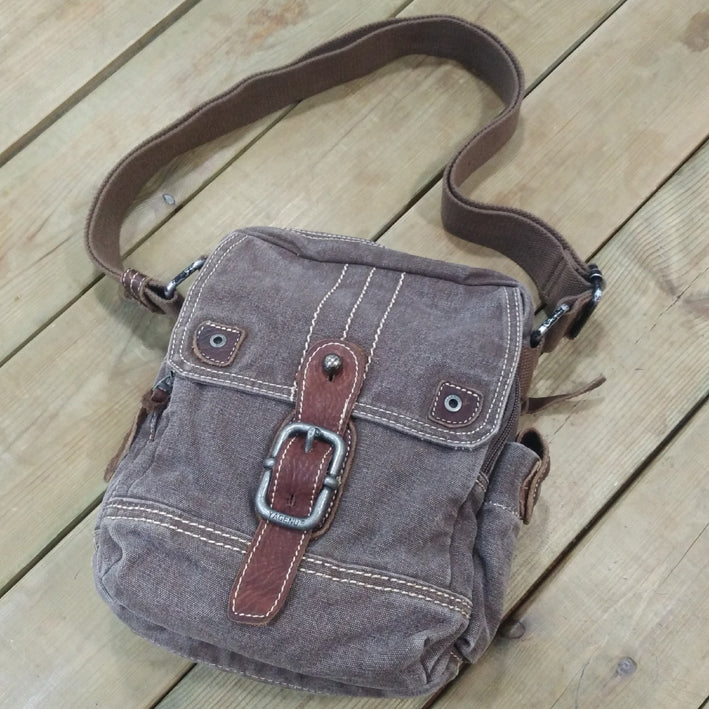 Step out in style with the canvas vertical shoulder bag, designed to complement both men's and women's fashion sensibilities. Measuring 25cm x 19cm x 8cm, this compact yet spacious bag offers the perfect blend of functionality and vintage charm.