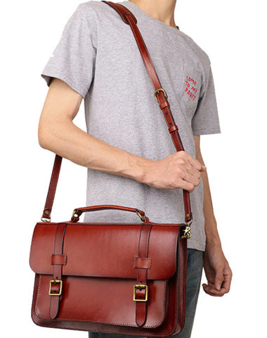 Men's Coffee Leather Convertible Messenger Bag Backpack Stachel Bag For Men