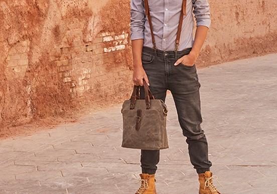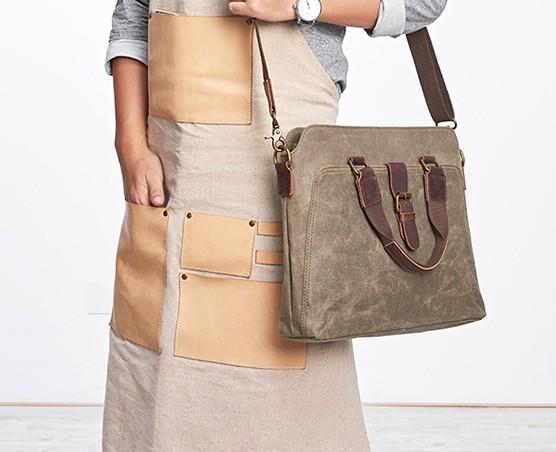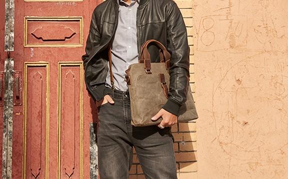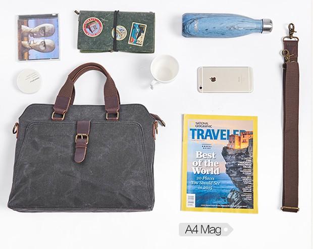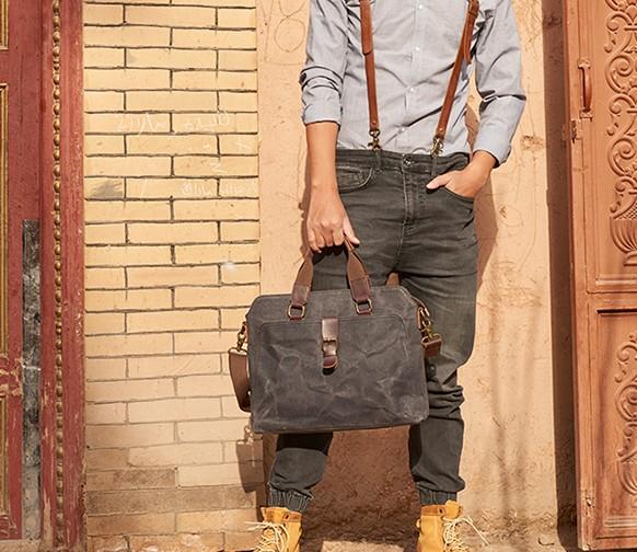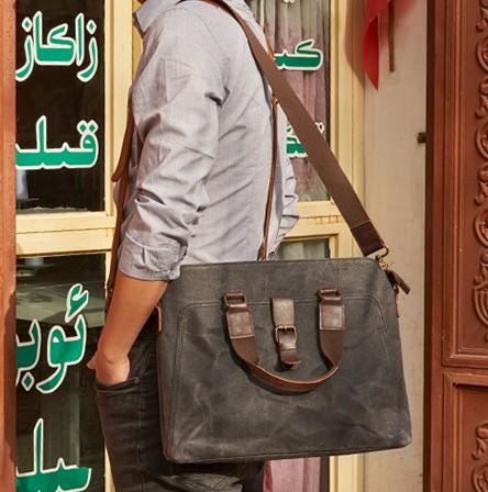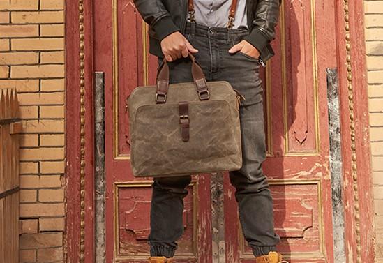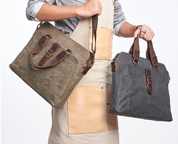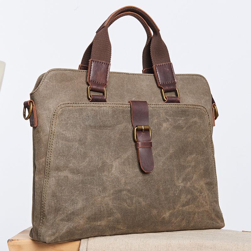 Style: Mens Gray Canvas Small Briefcase Handbag Work Bag Business Bag for Men