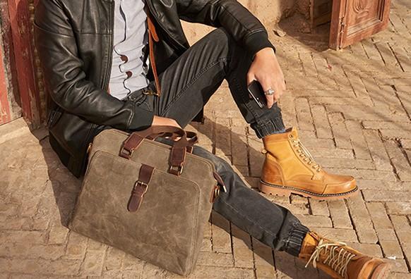 Design: Mens Gray Canvas Small Briefcase Handbag Work Bag Business Bag for Men