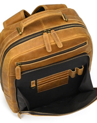 Design: Mens Leather Laptop Backpack Light Brown Large Leather Backpack for Travel