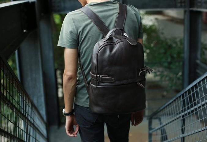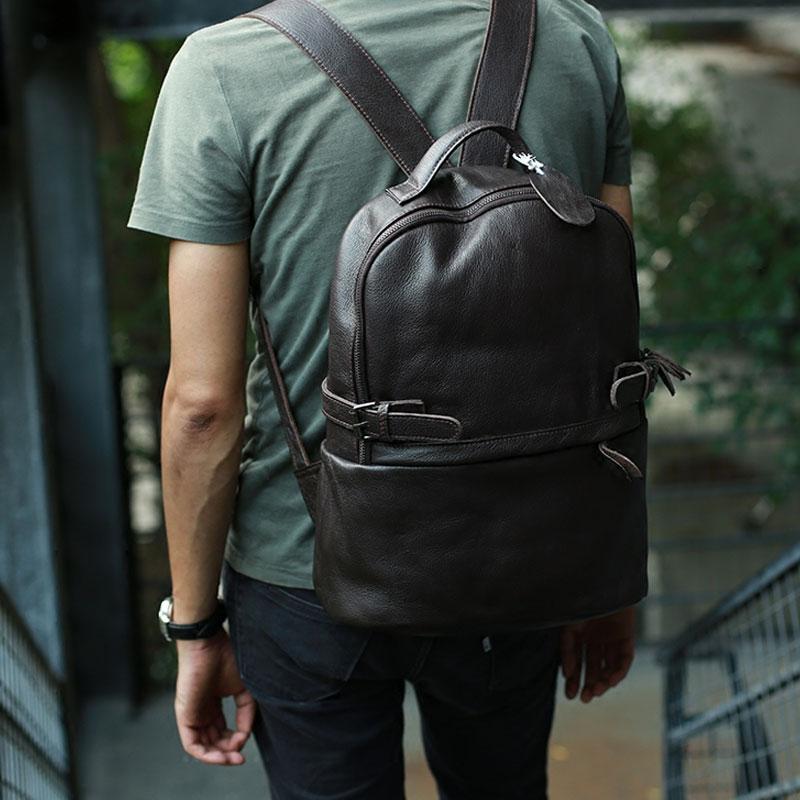 Design: Cool Brown Mens Leather Backpack Travel Backpacks Laptop Backpack for men