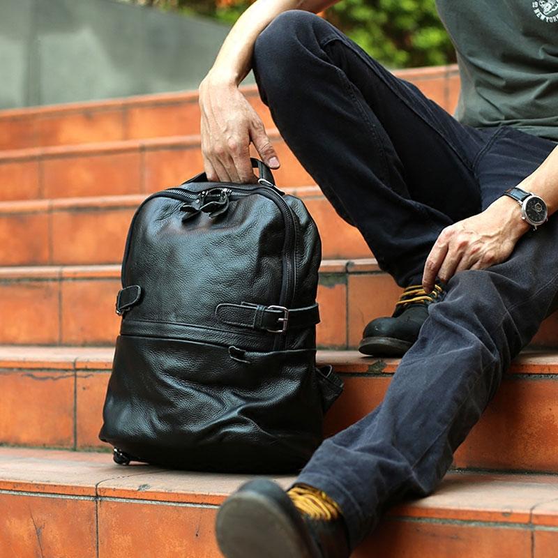 Style: Cool Brown Mens Leather Backpack Travel Backpacks Laptop Backpack for men