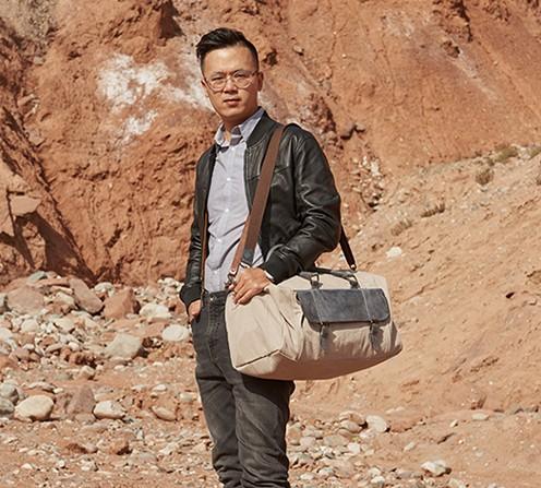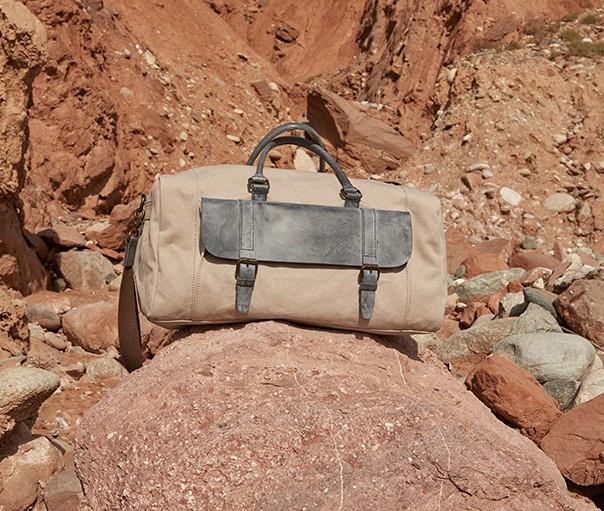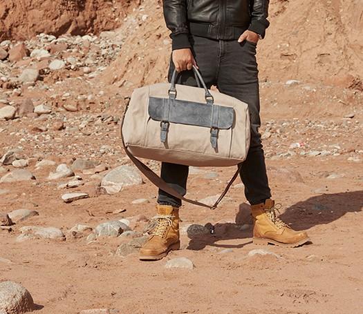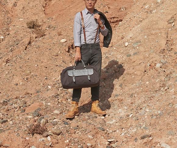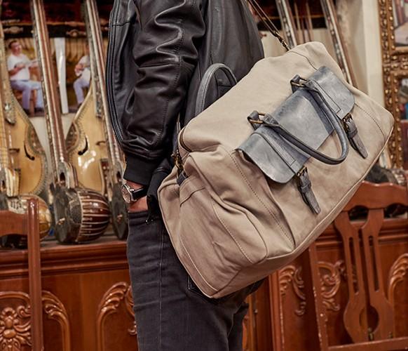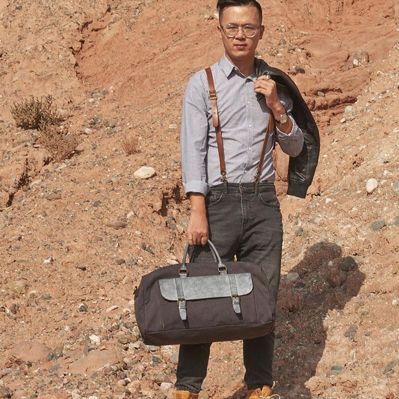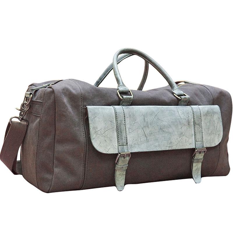 Design: Mens Leather Canvas Large Weekender Bag Canvas Travel Bag for Men