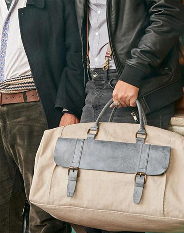 Style: Mens Leather Canvas Large Weekender Bag Canvas Travel Bag for Men