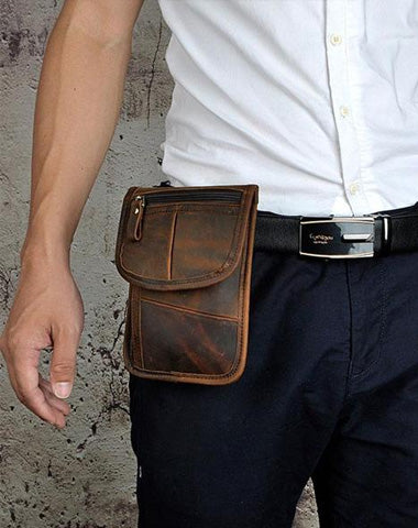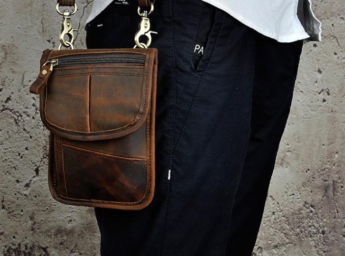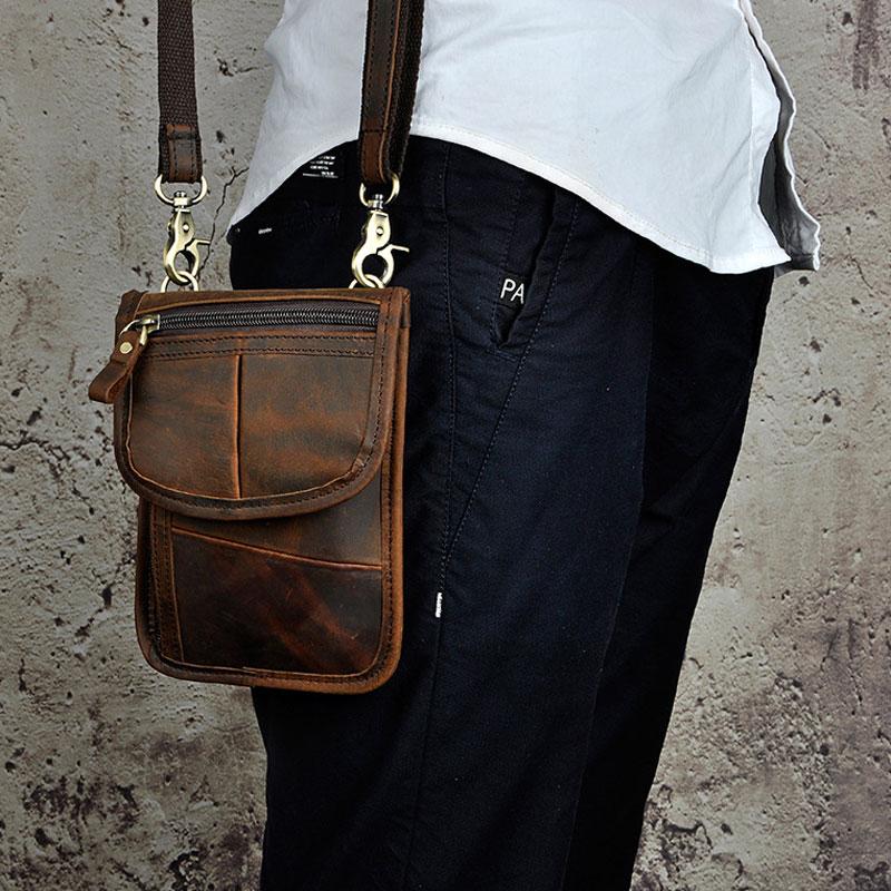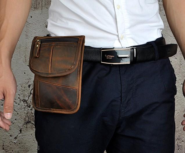 Design: Mens Leather Small Belt Pouch Slim Side Bag Waist Pouch Holster Belt Case for Men