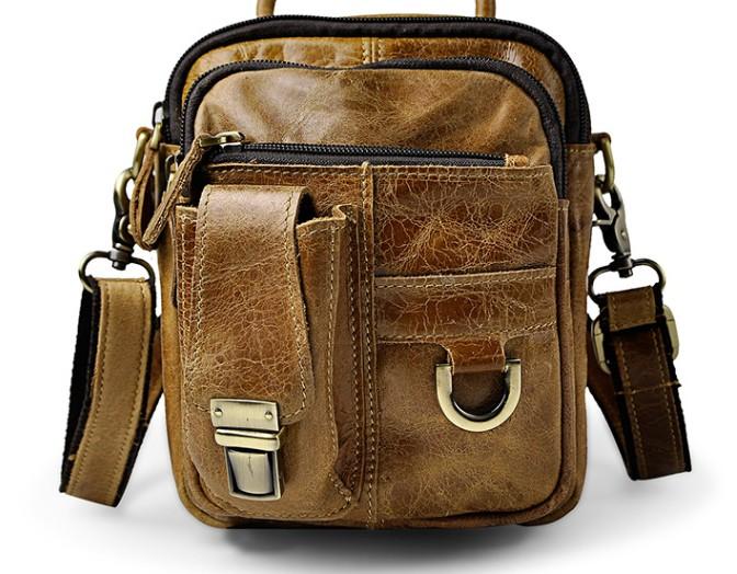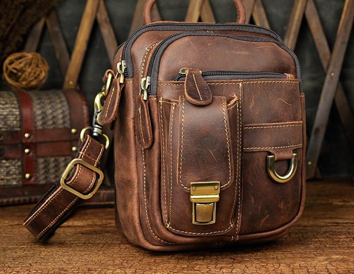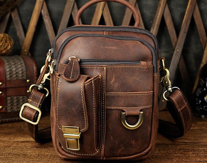Design: Mens Leather Small Side Bag COURIER BAG Waist Bag Holster Belt Case Belt Bag for Men